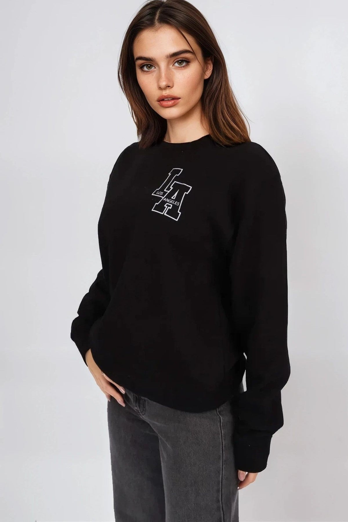 Experience comfort and style with the Aftershock London Embroidered LA Sweatshirt in Black. This oversized top, crafted from soft brushed terry fleece, offers warmth and a relaxed fit perfect for any casual outing. The long sleeves are designed to keep you cozy while the ribbed neckline, cuffs, and hem add a touch of sophistication with their refined top stitch finishing. Ideal for layering or wearing alone, this sweatshirt seamlessly blends fashion with function for a chic urban look. Elevate your wardrobe essentials with this versatile piece that pairs well with jeans or joggers for an effortlessly cool vibe!