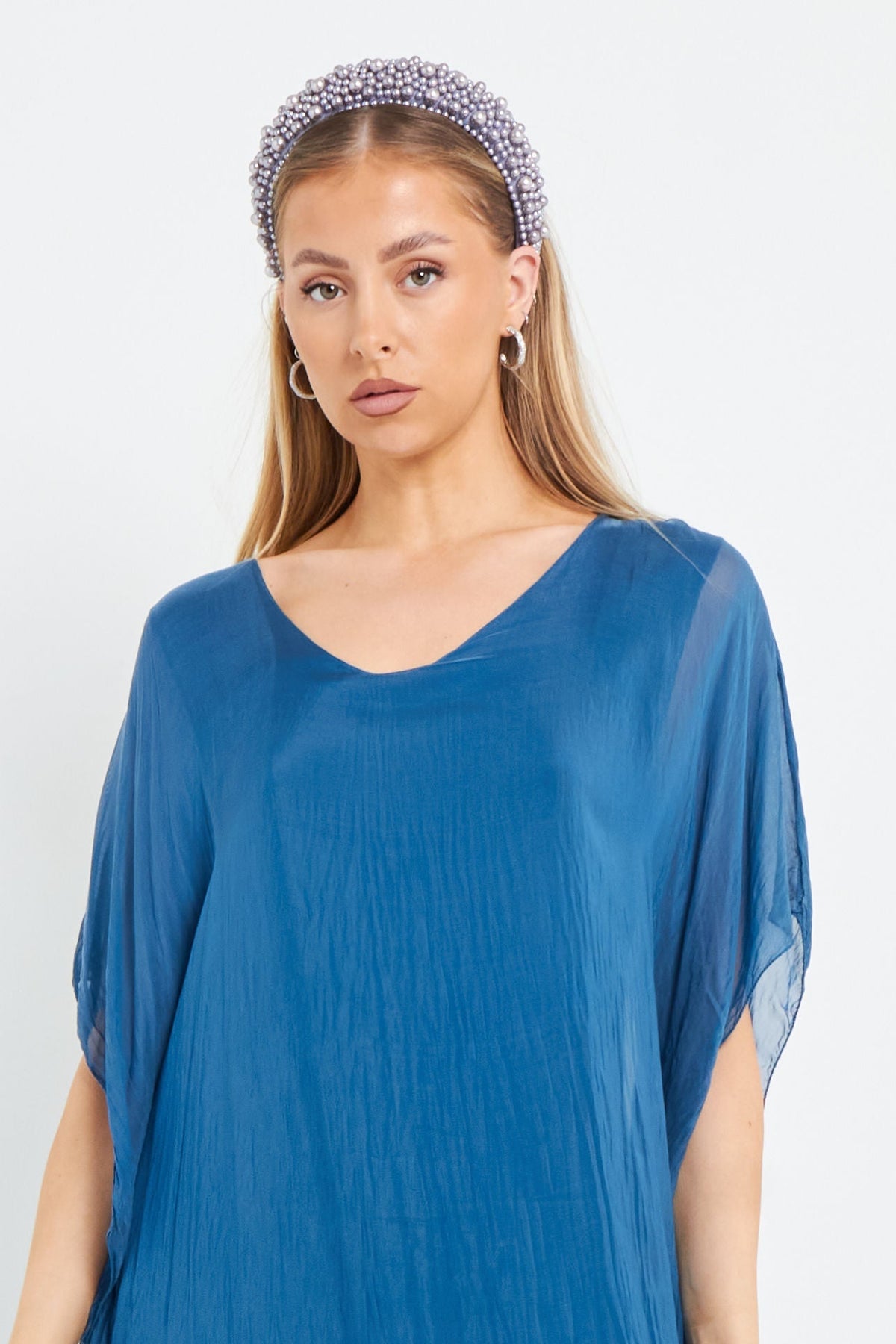 The Aftershock London Pearl Headband in Silver Blue features a soft finish with a luxury imitation pearl embellishment.