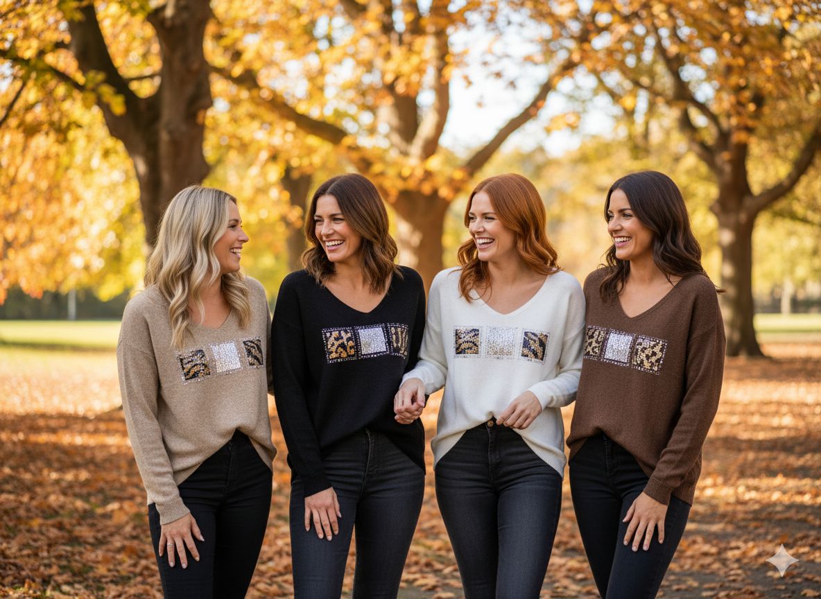 Super soft touch V Neck with sequin diamonye embellished detail.