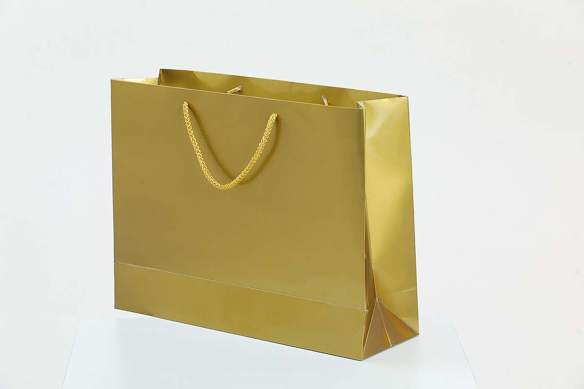 Our customers love these eye catching Gold Gloss Paper Boutique Bags which are most ideal for high value items. With 5mm cotton gold rope handles and 250gsm paper weight gives super feeling and quality is extremely high when touching. These fashion gloss paper bags certainly give off a luxurious image. Your customers will reuse them for sure many times. The gloss laminated finish is reflects the light making these bags very eye-catching, especially in a stylish gold colour.