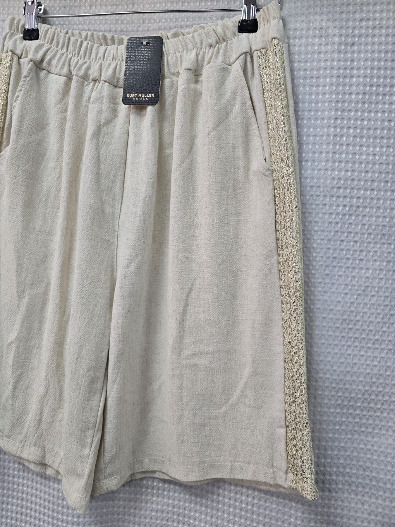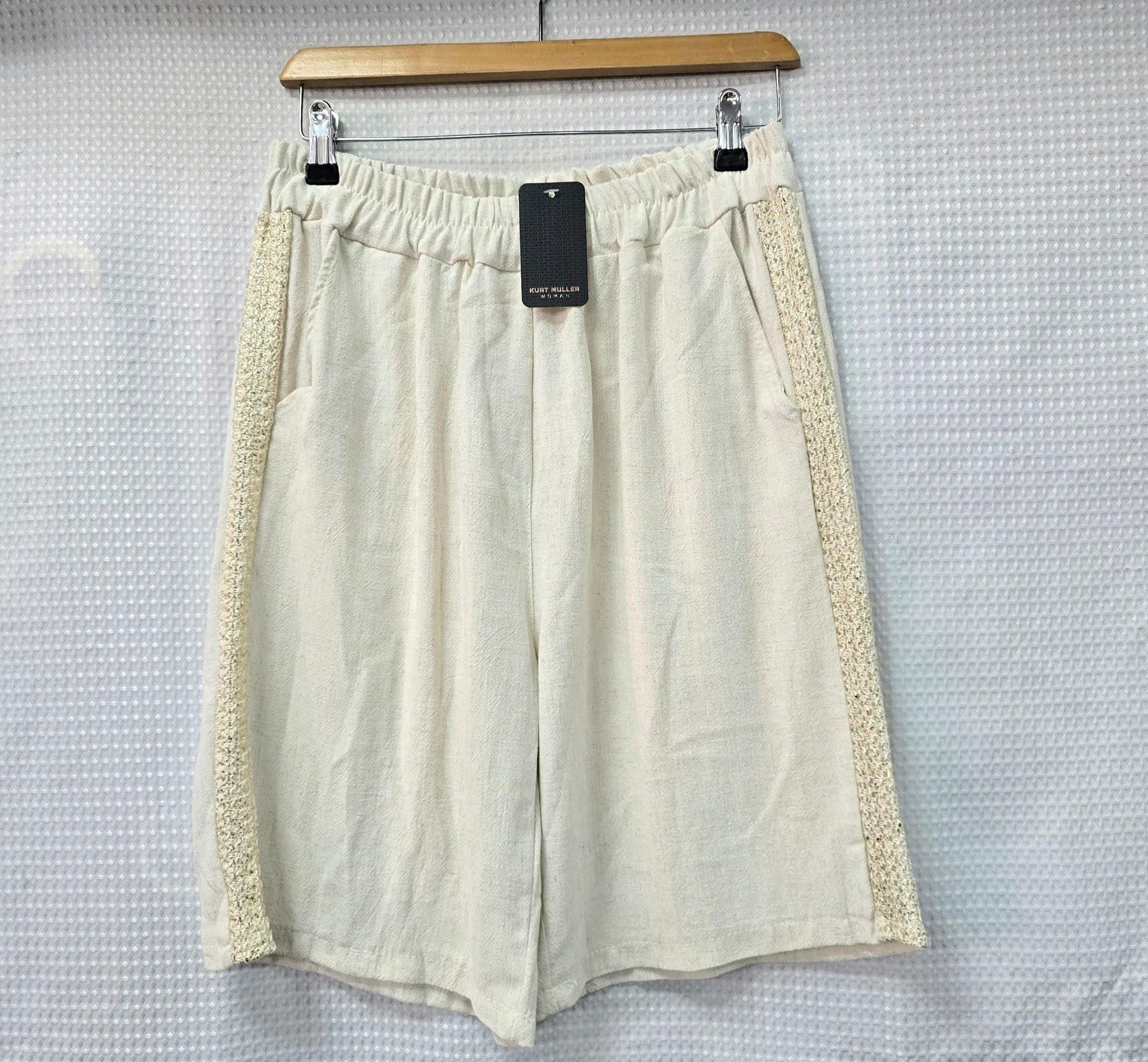 Wide-leg linen-cotton shorts in a soft, breathable fabric with luxe gold foil trim along the side panels. A relaxed yet elevated essential for warm-weather styling.