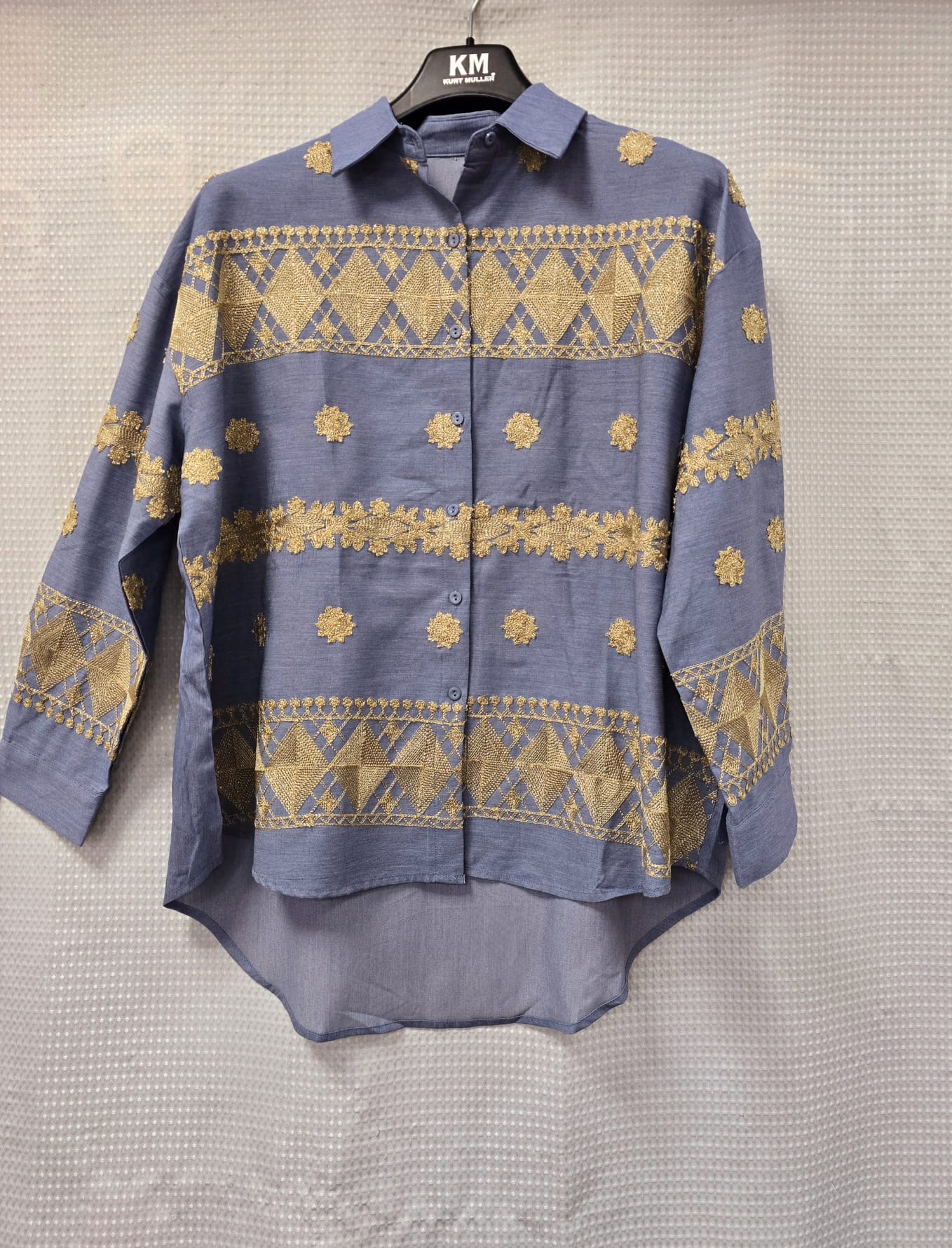 A perfect staple for boutique owners looking to stock elegant and versatile chambray shirts with a luxurious embroidery finish!