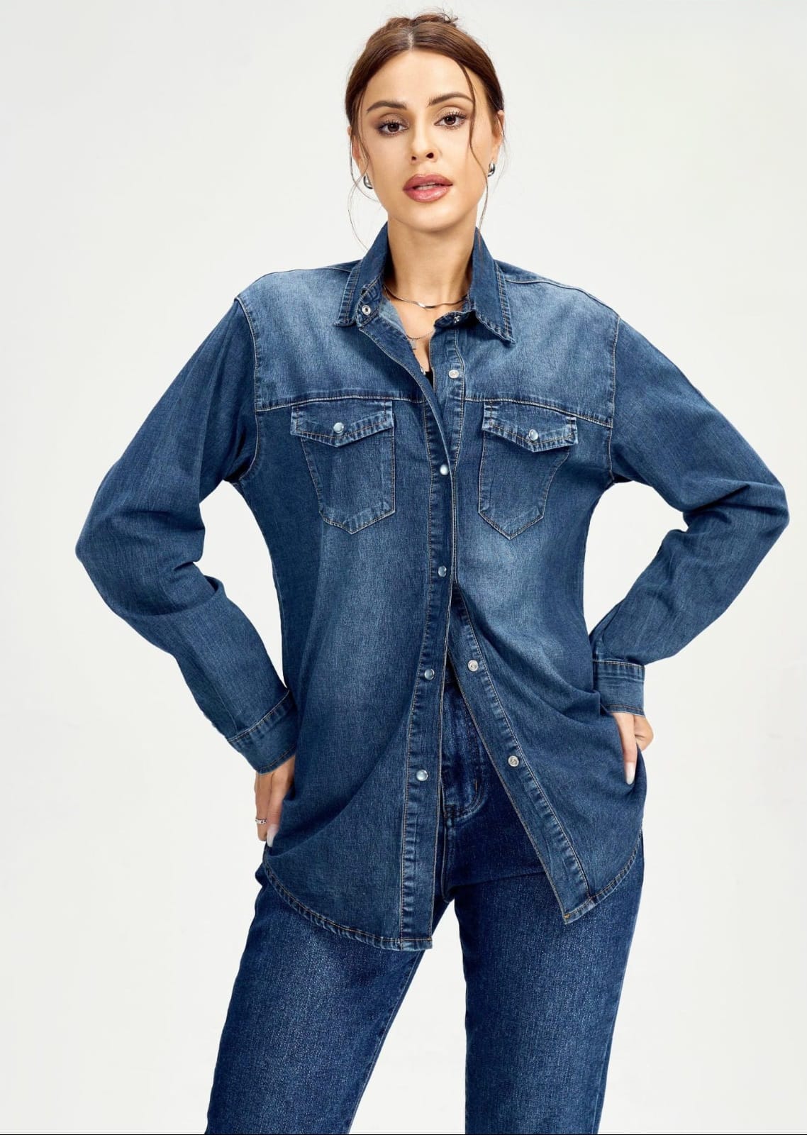 Add a timeless piece to your collection with this Vintage Cotton Denim Pearl Shirt, a premium-quality design that combines classic style with modern details. Featuring trendy pearl popper fastenings and a relaxed fit, this versatile shirt is perfect for casual and smart-casual occasions.