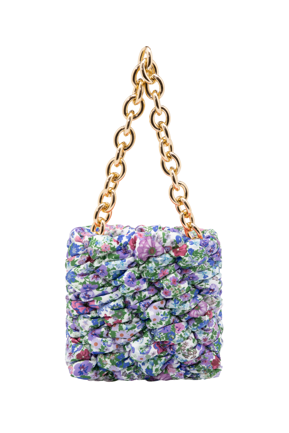 Add colour and fun to your collection with this blue floral mini bag, crafted in a bold ruched texture and finished with a gold-tone chain strap. A boutique bestseller in the making – vibrant, cute, and eye-catching.