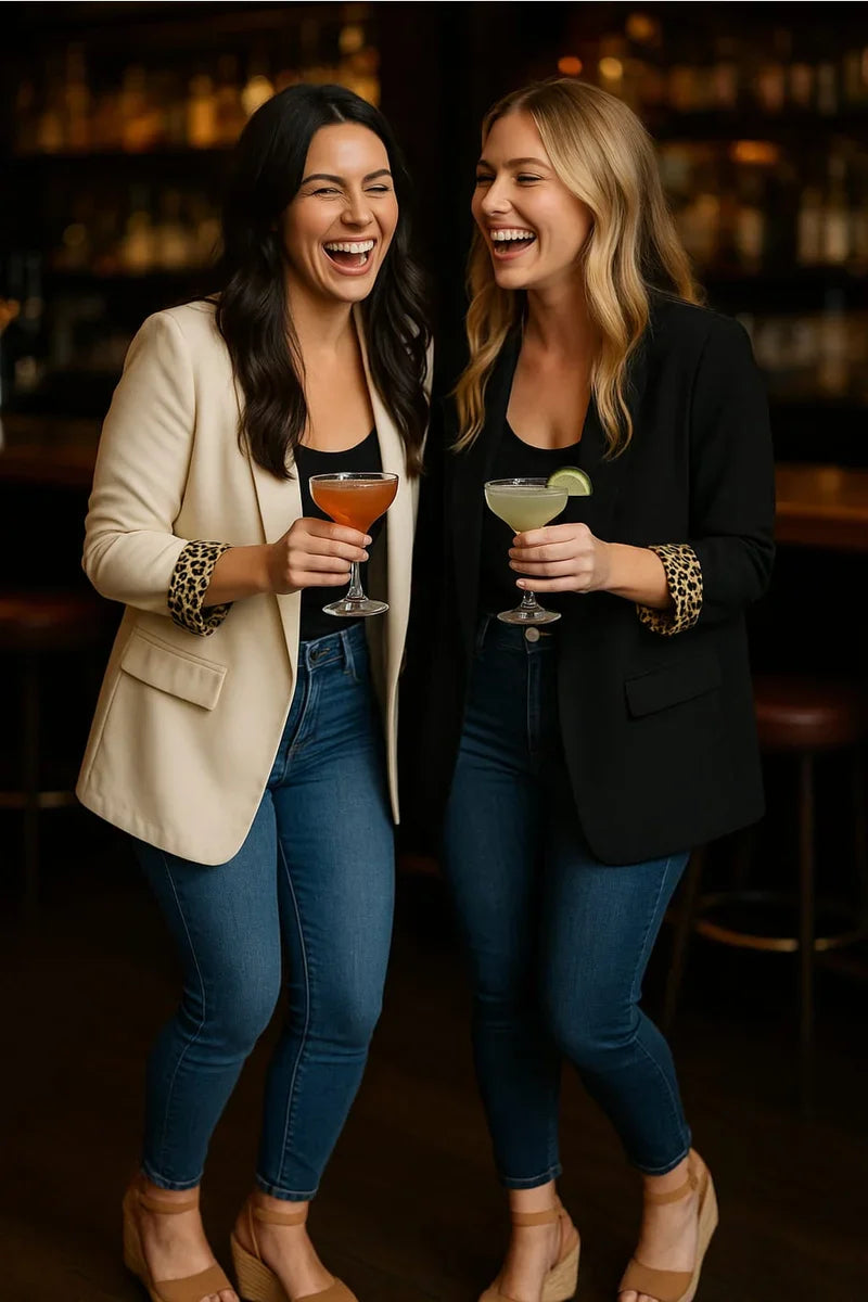 Smart and stylish blazer from the new season collection. Features turn-up sleeves with a statement leopard trim and matching lining. Designed with a lapel collar, front faux pockets, and full lining for a flattering, comfortable fit. A timeless wardrobe staple — perfect for year-round wear
