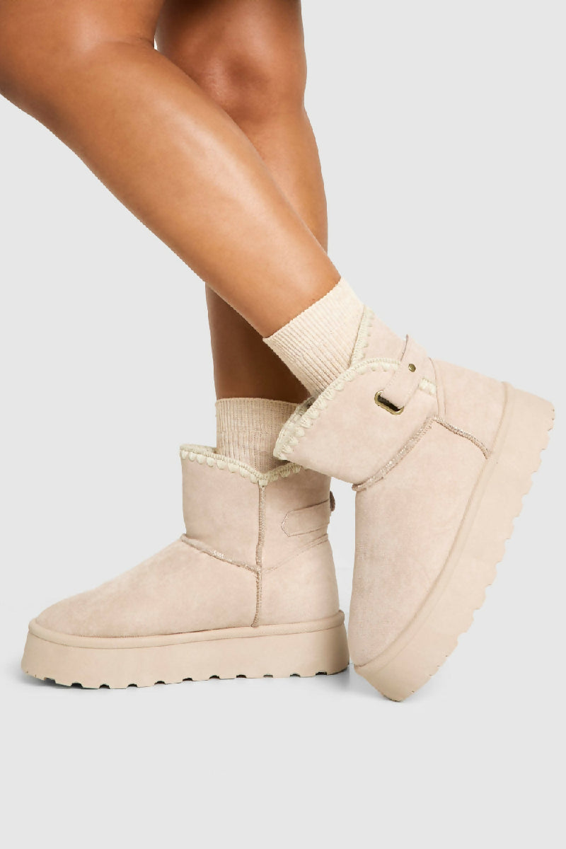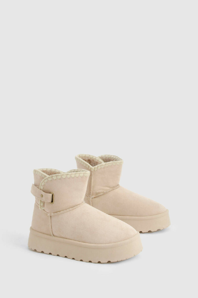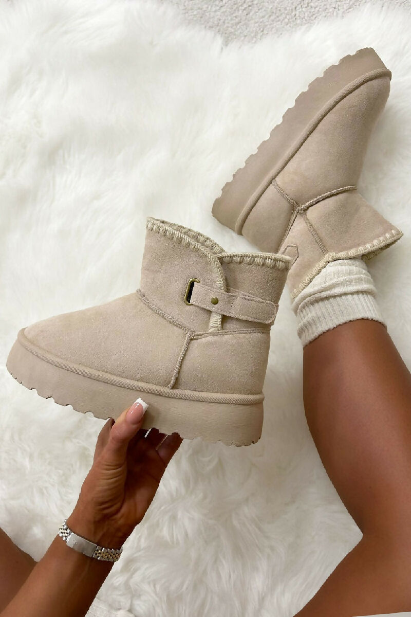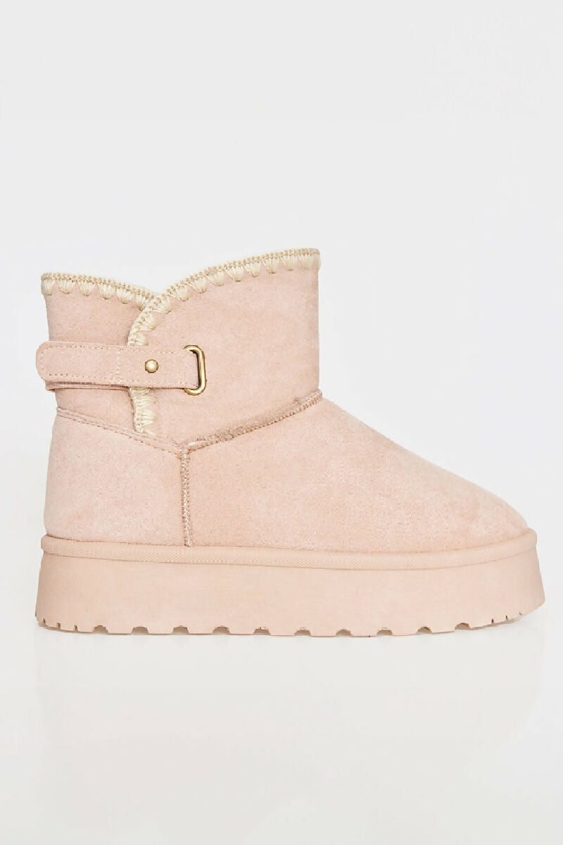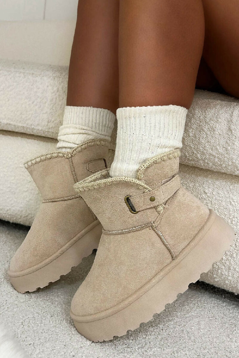 CREAM THICK SOLED SLIP ON FUR LINED ANKLE BOOTS (PACK OF 12 PAIRS UK3-UK8)