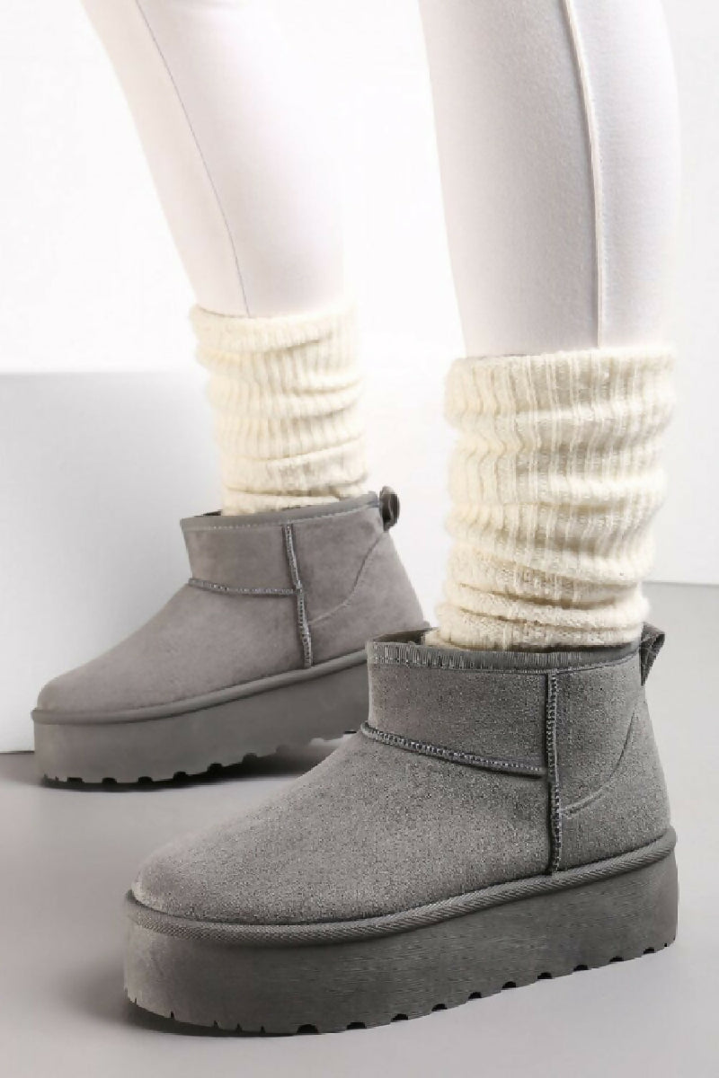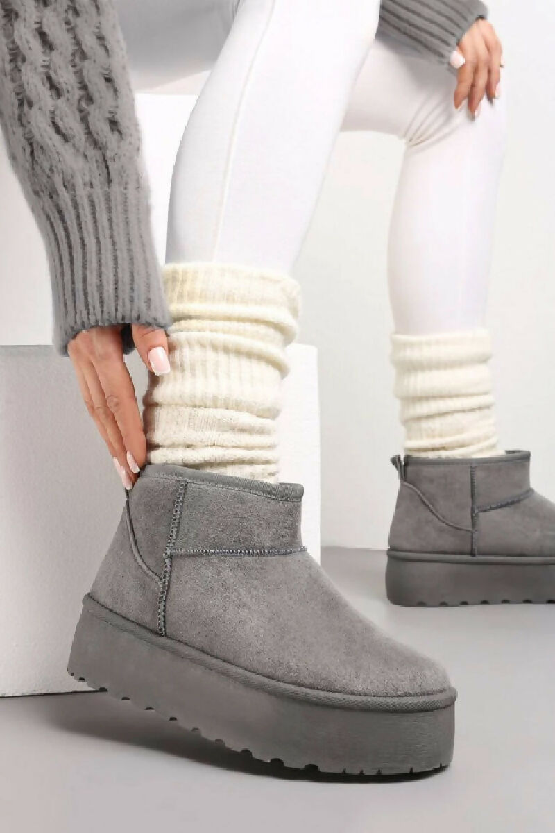 GREY ULTRA MINI PLATFORM FAUX FUR LINED ANKLE BOOTS (PACK OF 12 PAIRS UK3-UK8)