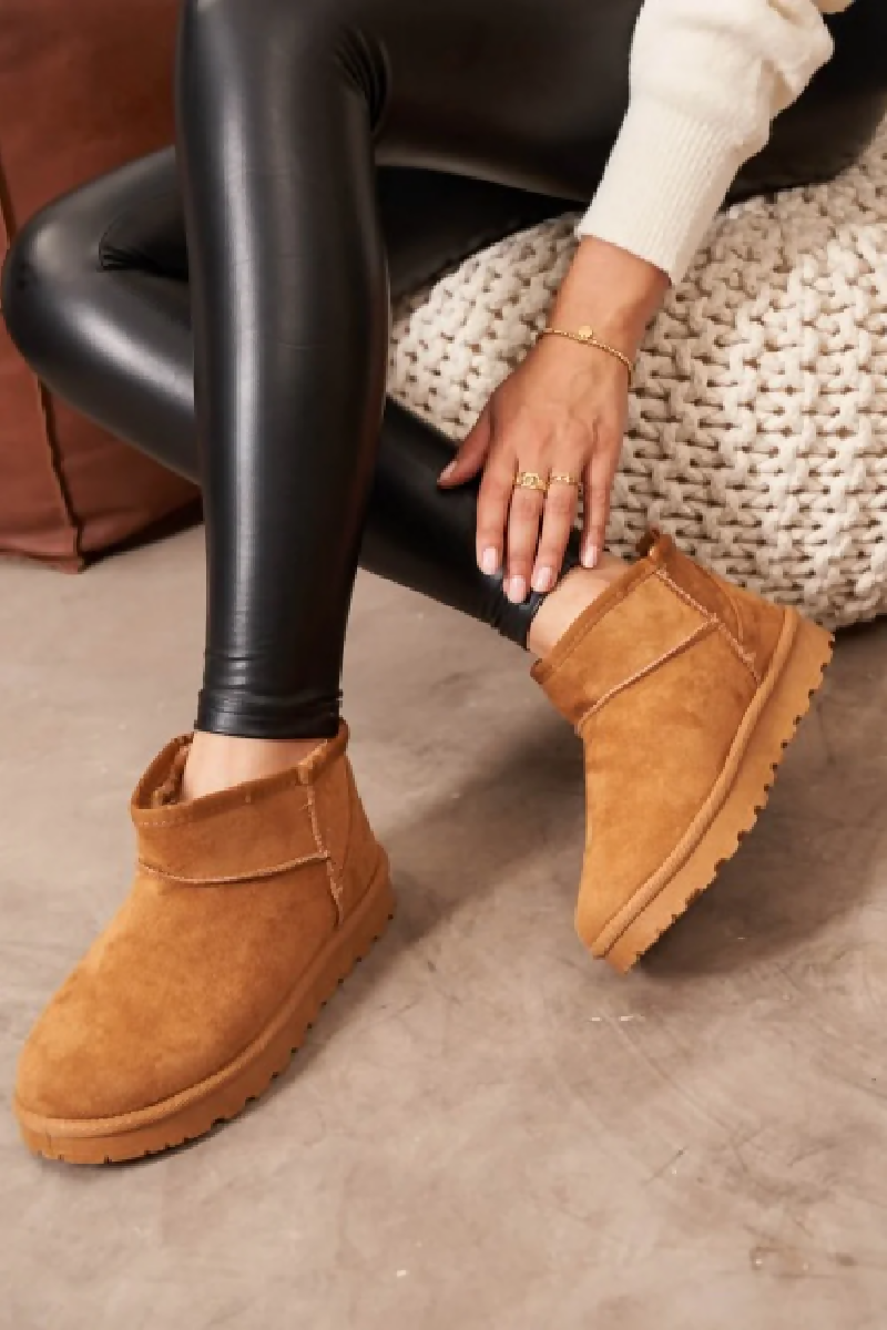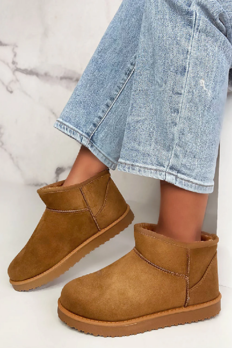 LADIES CHESTNUT FAUX SUEDE ULTRA MINI COZY SNOW ANKLE BOOTS-UK3 TO UK8 SIZES (12 PAIR PACK)