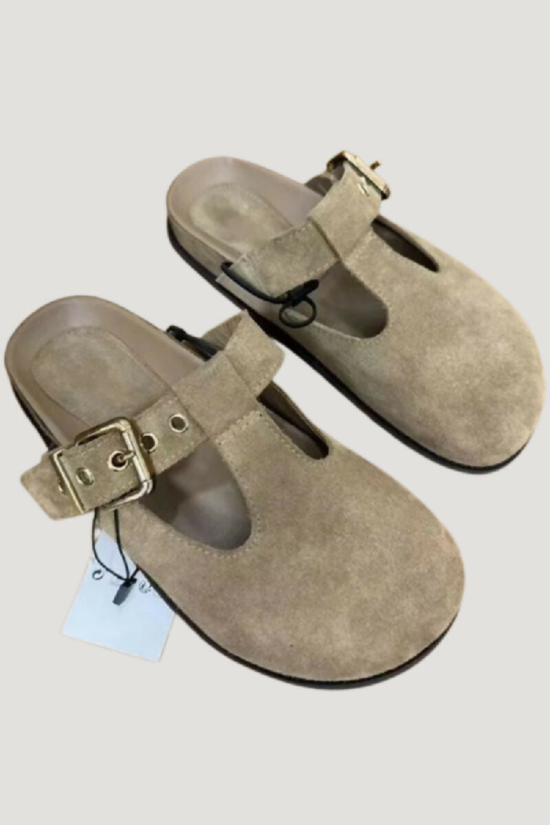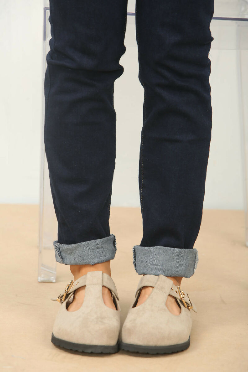 SLIP ON SPLIT KHAKI SUEDE CLOGS WITH BUCKLE (PACK OF 12 PAIRS UK3-UK8)