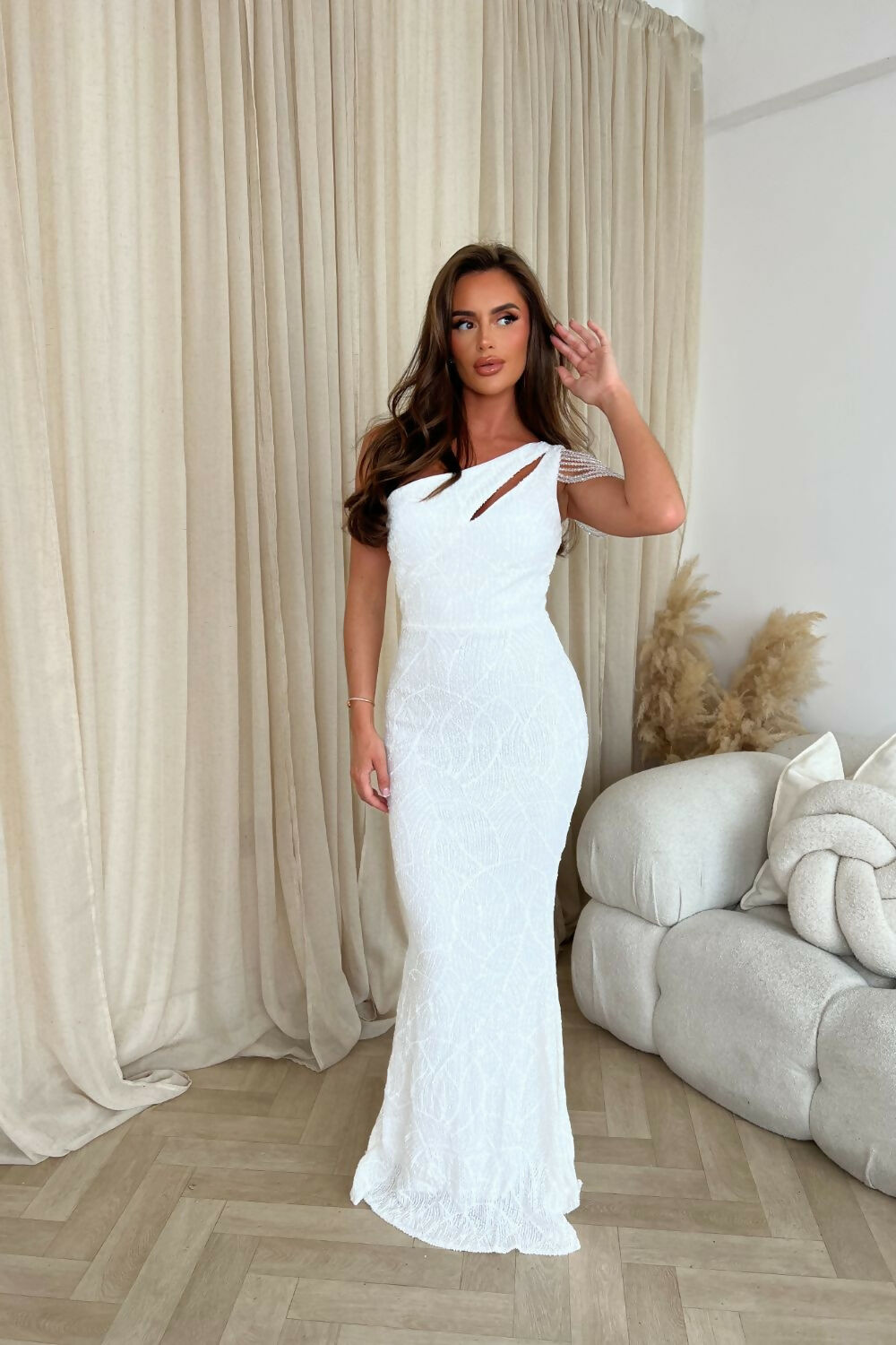 Make a bold statement in the stunning Impress Luxe Maxi Dress in White. This elegant gown is the epitome of sophistication and glamour, designed to turn heads at every event. With its curve-enhancing silhouette and intricate detailing, it’s a must-have for your boutique.