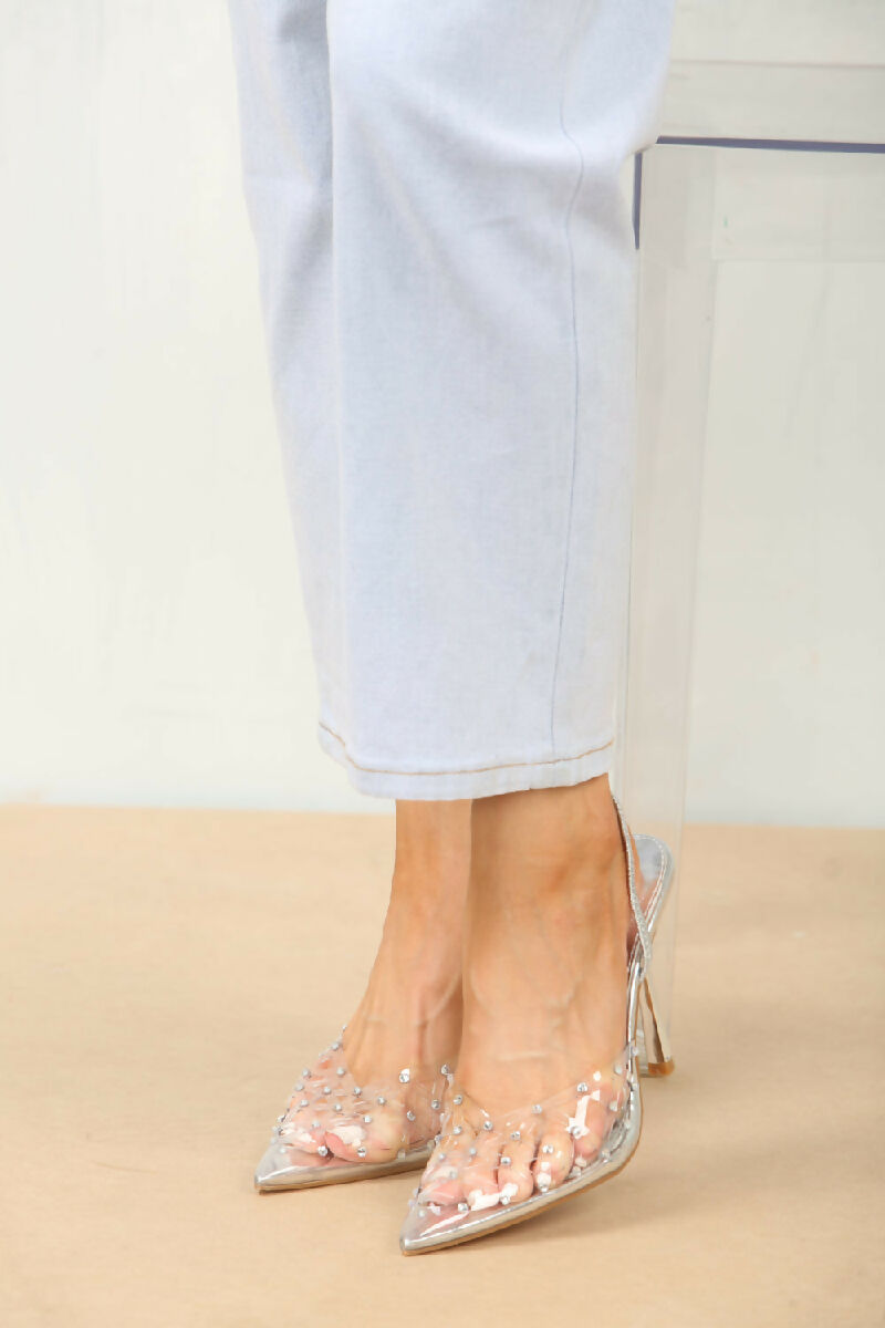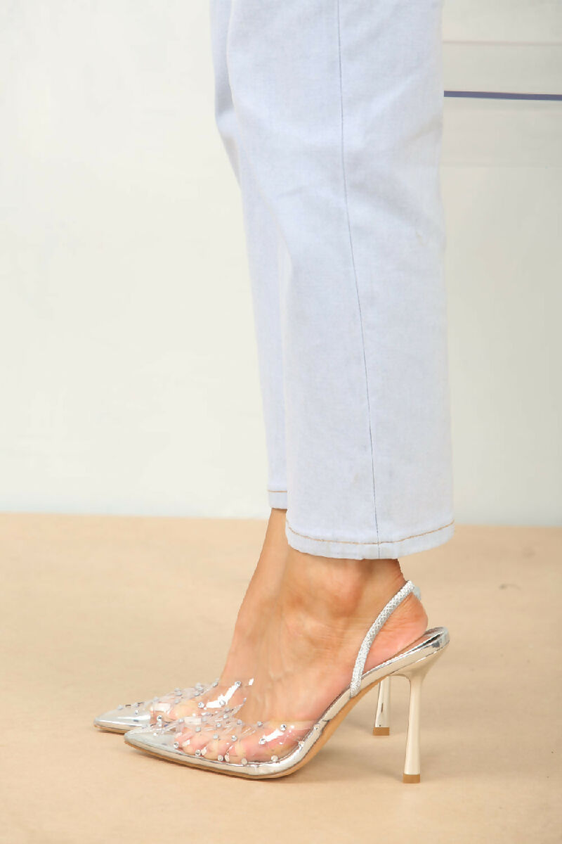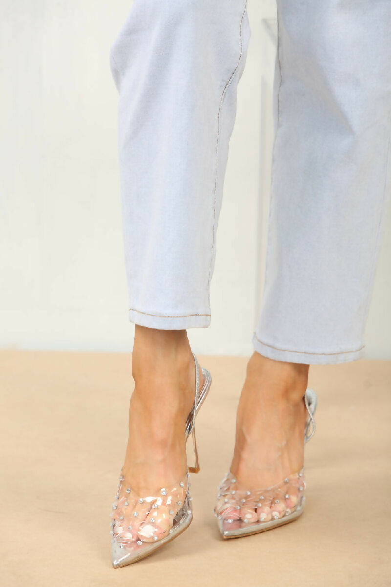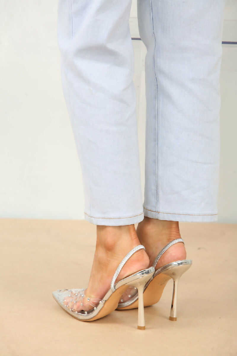 Silver Diamante Detailed Perspex Sling back Heel (PACK OF 12 PAIRS UK3-UK8)