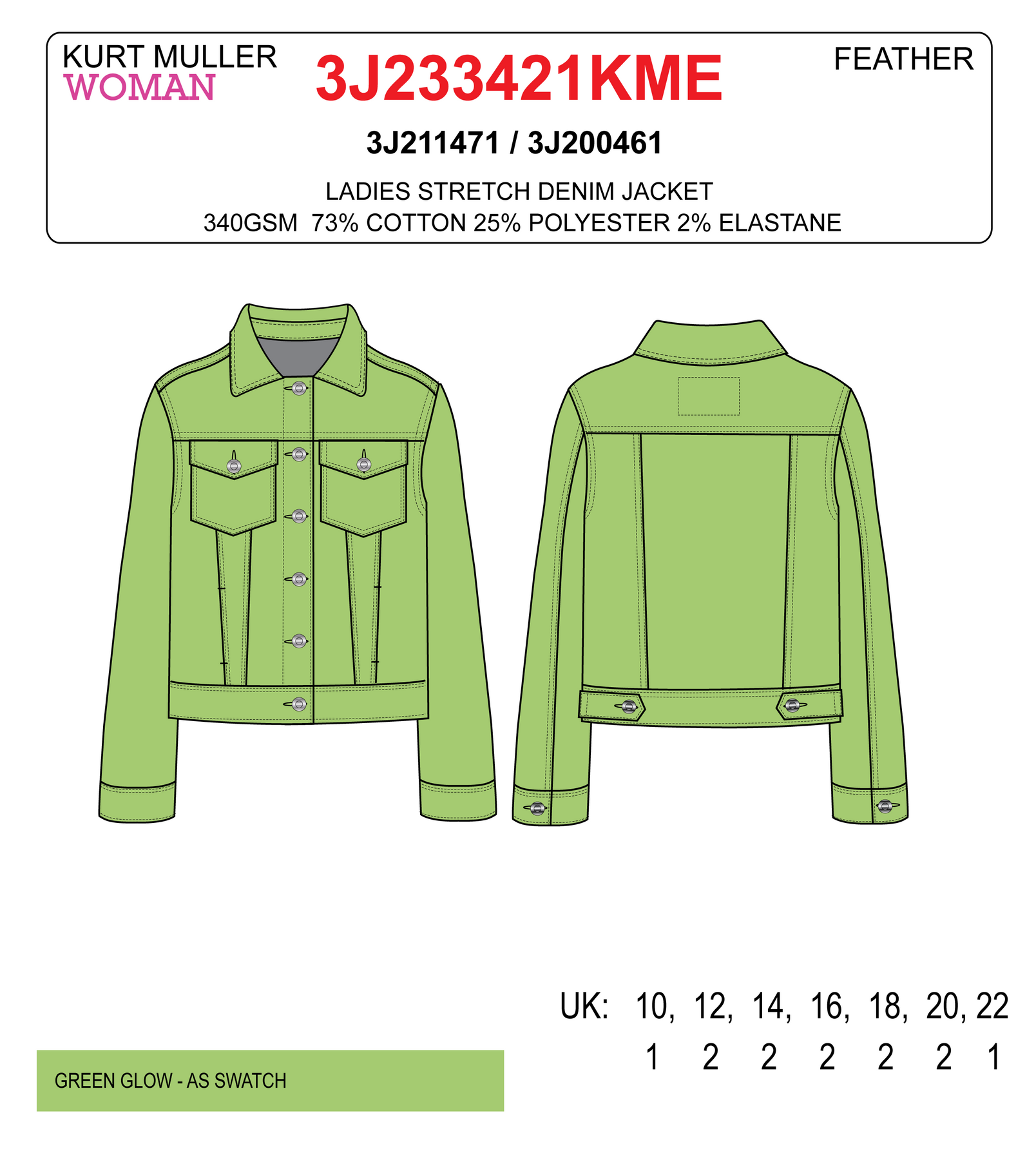 (7P.PACK) Lime Green Denim Cotton Stretch Jacket