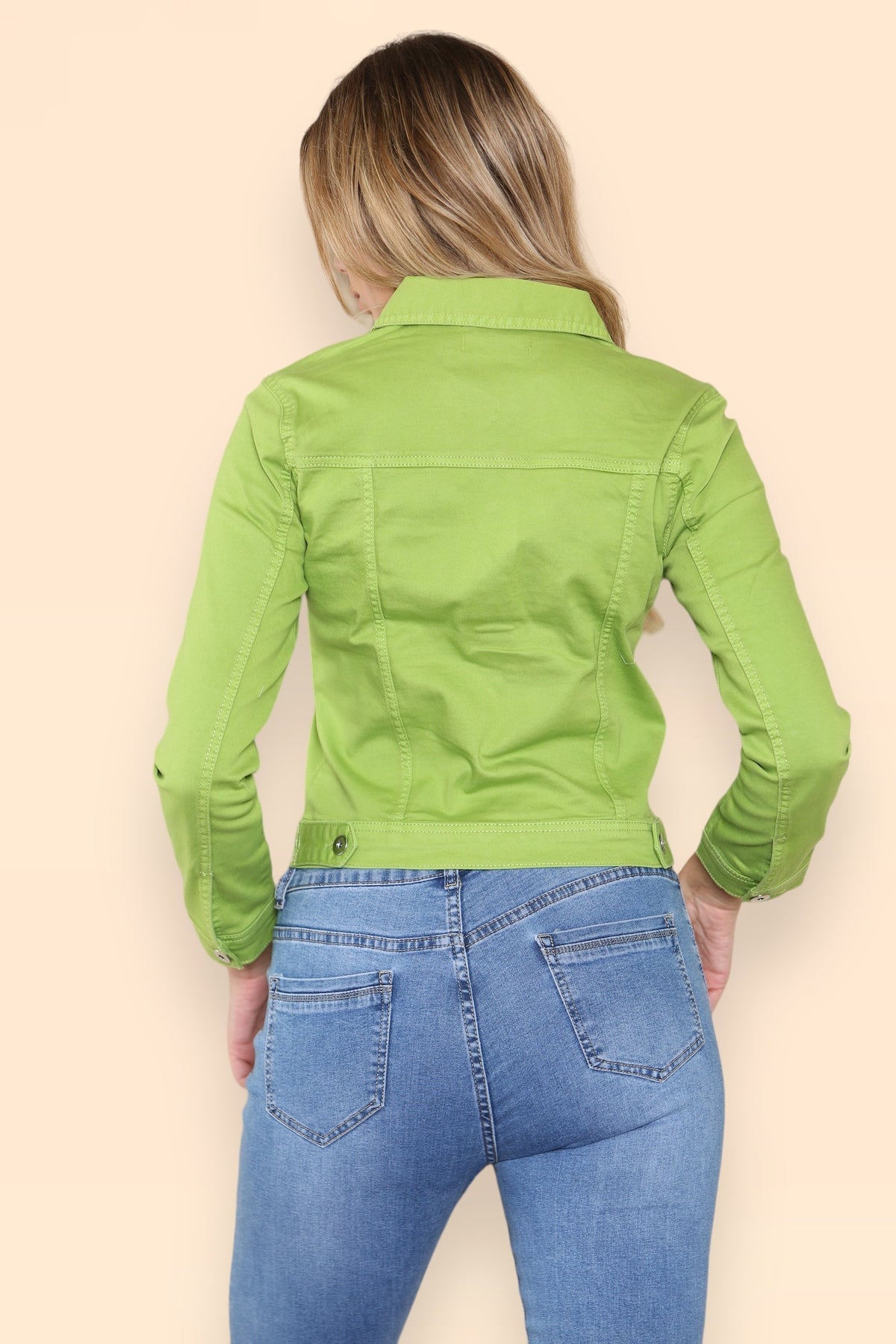 (7P.PACK) Lime Green Denim Cotton Stretch Jacket - jqwholesale.com