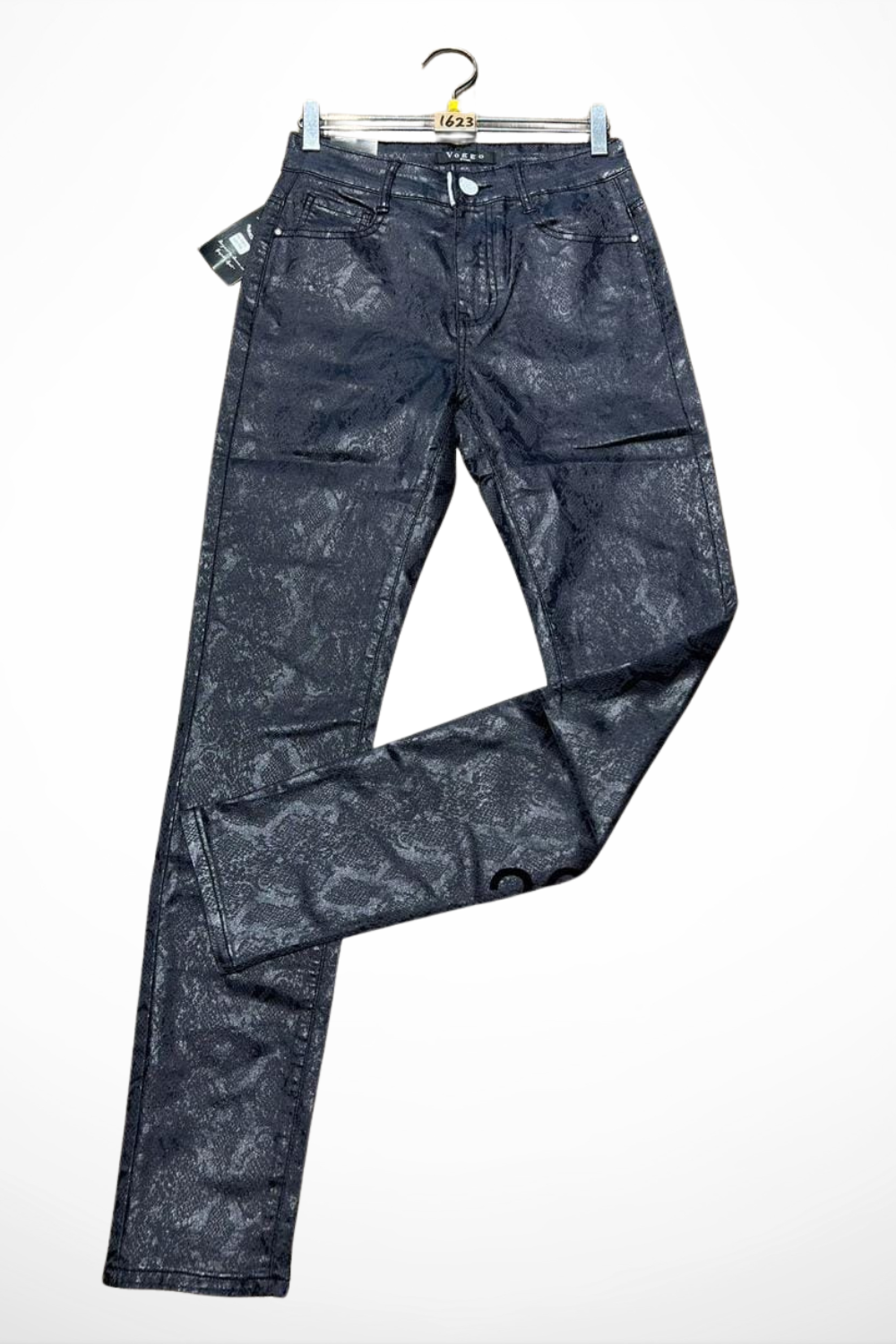(5P.PACK) Reptile Embossed Faux Leather Jeans