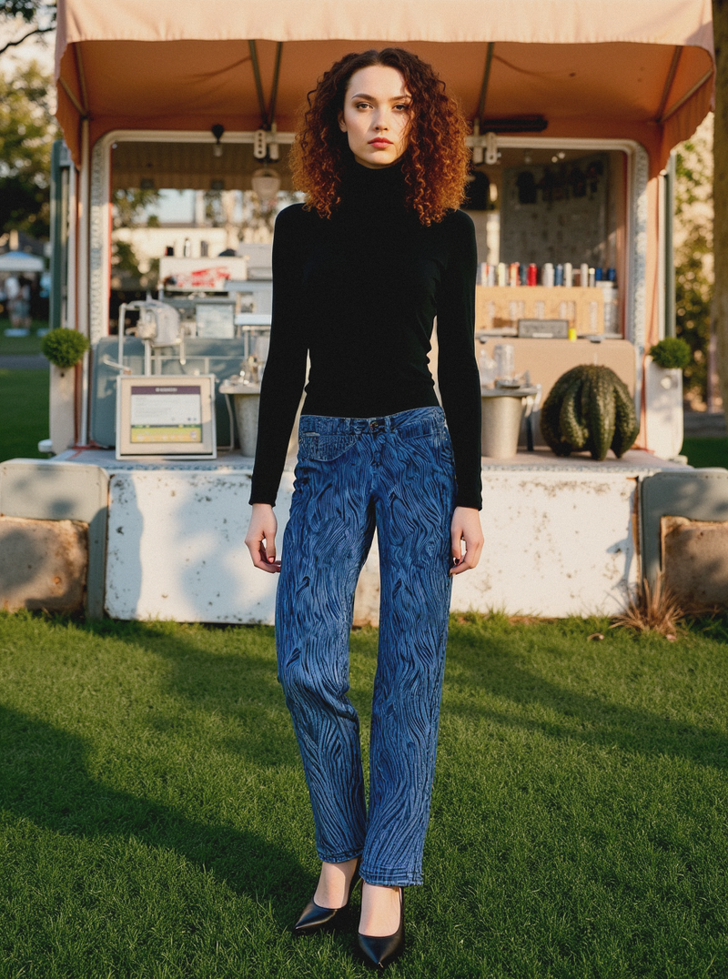 High rise waist with 2 rear jeans pockets , soft stretch for a relaxed yet flattering fit.