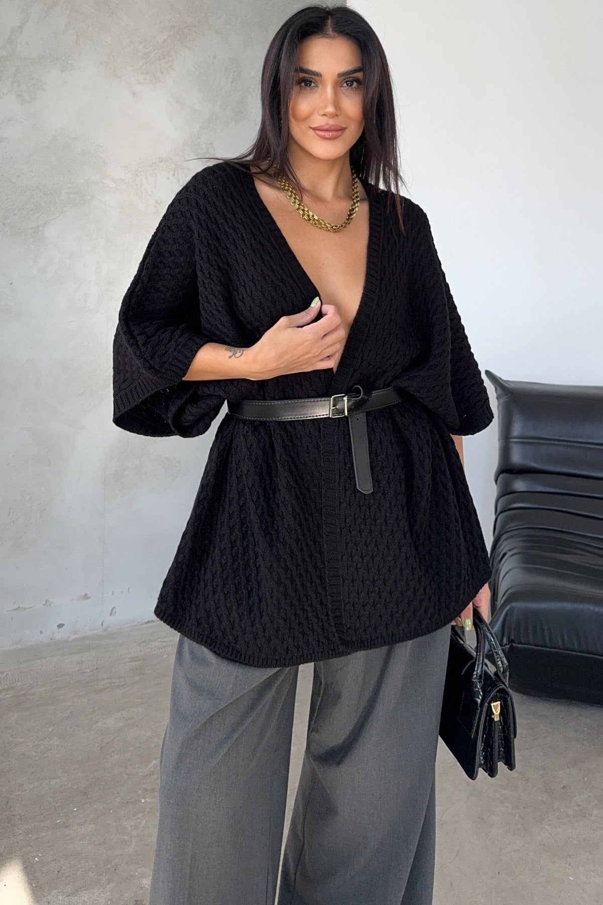 Add a timeless touch to any wardrobe with our Cardigan with Wrap Style in classic black. Featuring elegant knit details, this cardigan is both comfortable and chic—ideal for any occasion. It’s the ultimate layering piece for those who want style without compromise.