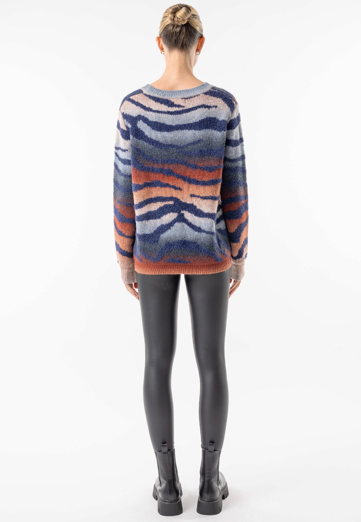 Head into cosy season in style with the Californian Crew Neck Knit Jumper by ANGELEYE. This classic crew neck shape in a cool season essential, especially in a knit. Elevate your wardrobe with this unique, earth toned jumper and stripes that mimic mountains. Style this for everyday wear in and out of the house.