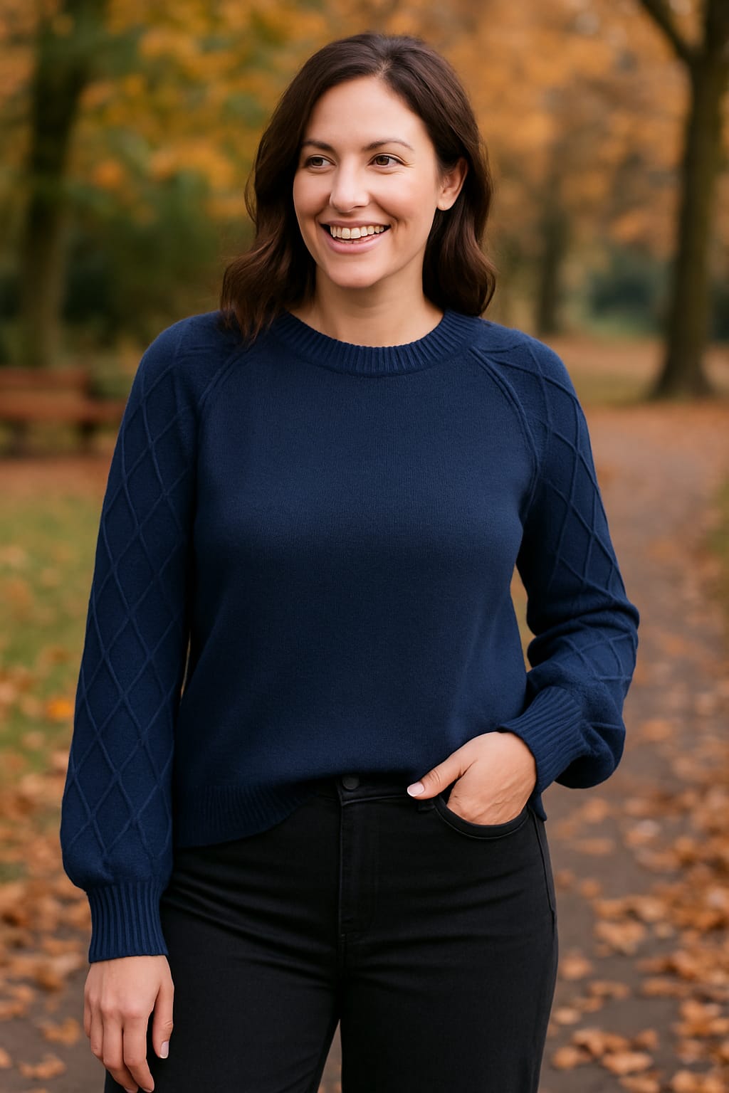 Diamond Cable Detail Sleeve Crew Neck Knit Jumper (2p.pack) - jqwholesale.com