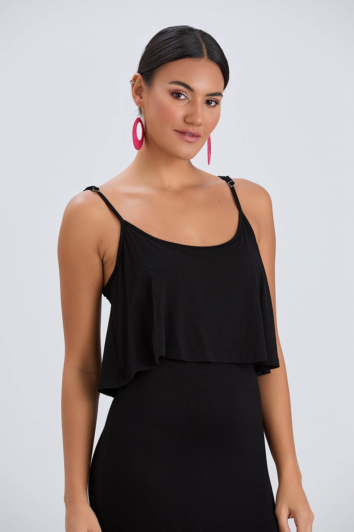 Make a stunning entrance with our Sleek Black Bodycon Maxi Dress, crafted to enhance your curves with a flattering, body-hugging fit. Featuring delicate cami straps and a streamlined silhouette, this dress exudes sophistication and timeless appeal, perfect for those who love a sleek, modern style. The maxi length adds an elegant touch, making it a versatile addition to your wardrobe.