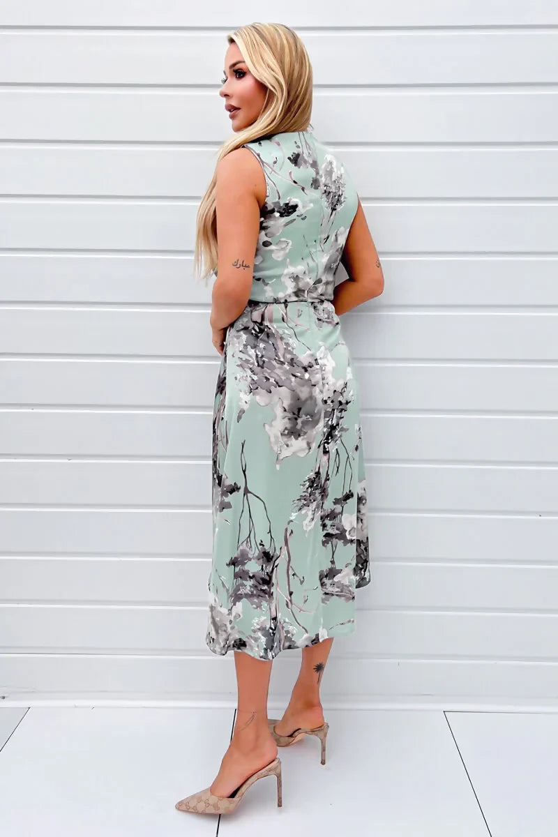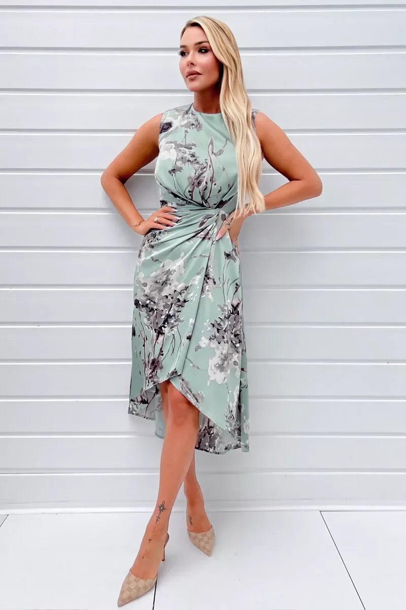 Our Duck Egg Print Gathered Midi Dress With Shoulder Pads is the perfect evening dress for the Summer season! Its gathered detailing on one side, shoulder pads and high neck makes this dress super flattering. Team it with some heels and a clutch the complete the look!
