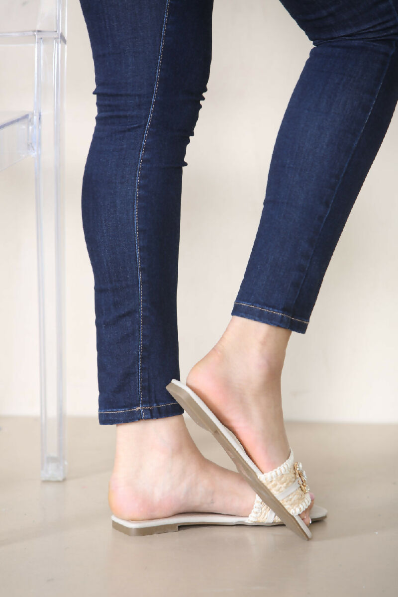 BEIGE FLAT DIAMANTE TRIM DETAIL MULES CASUAL SANDALS (PACK OF 12 PAIRS UK3-UK8)