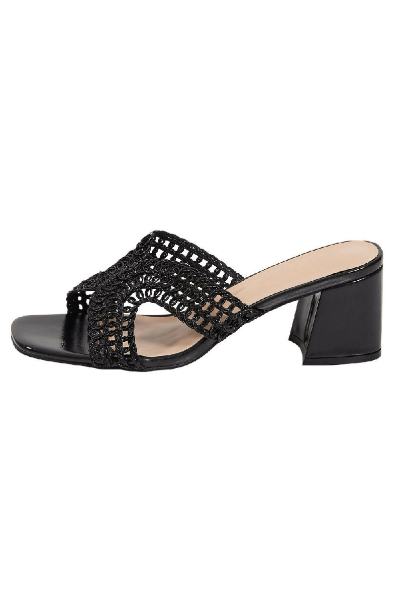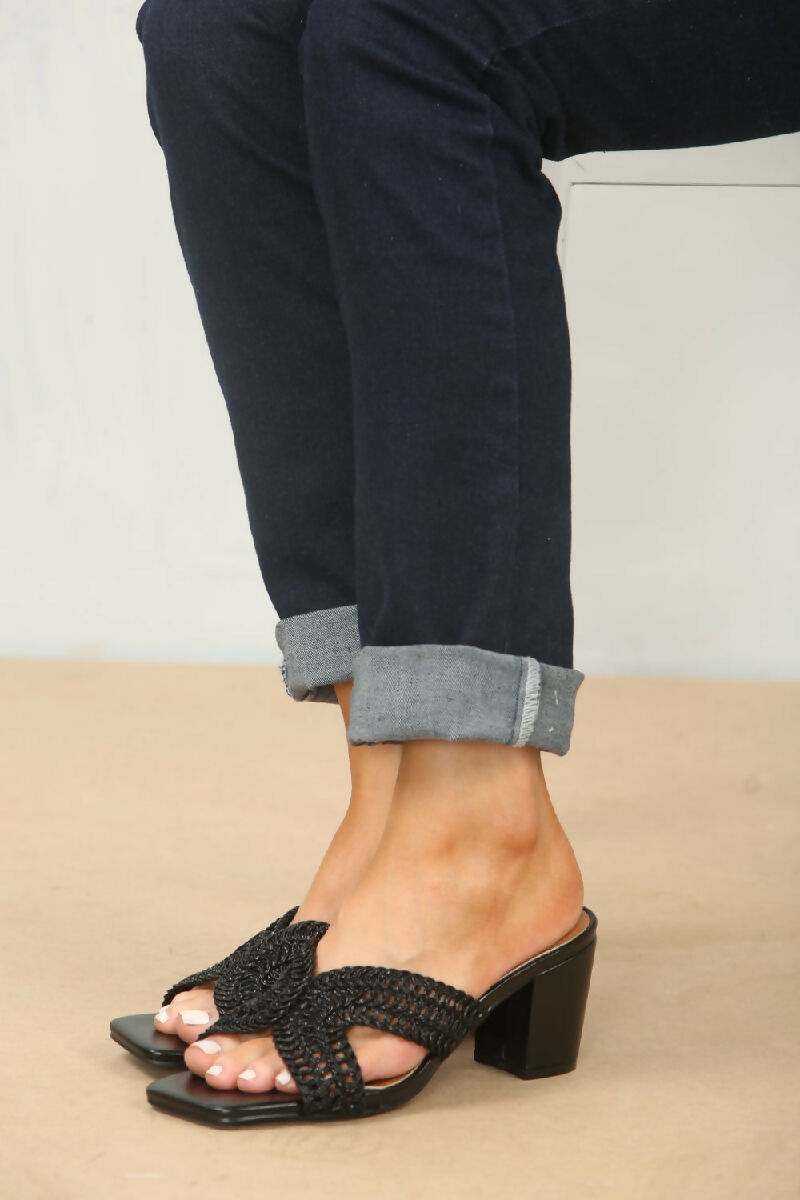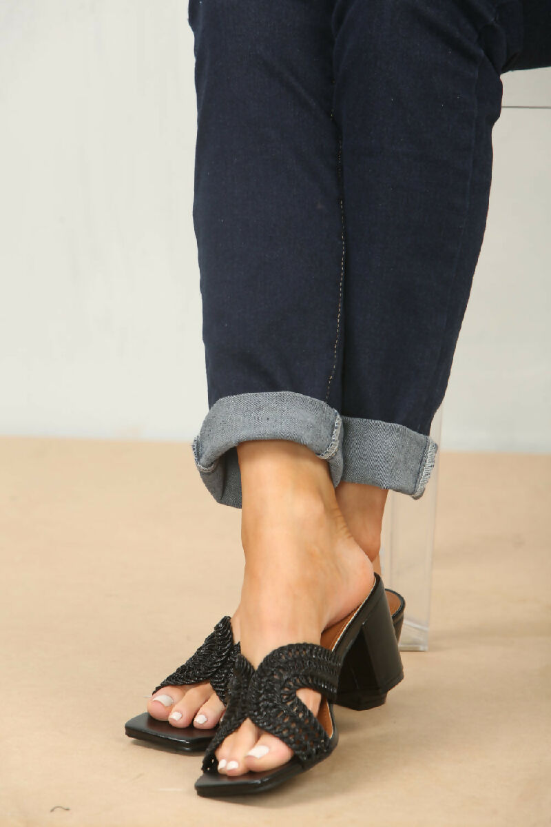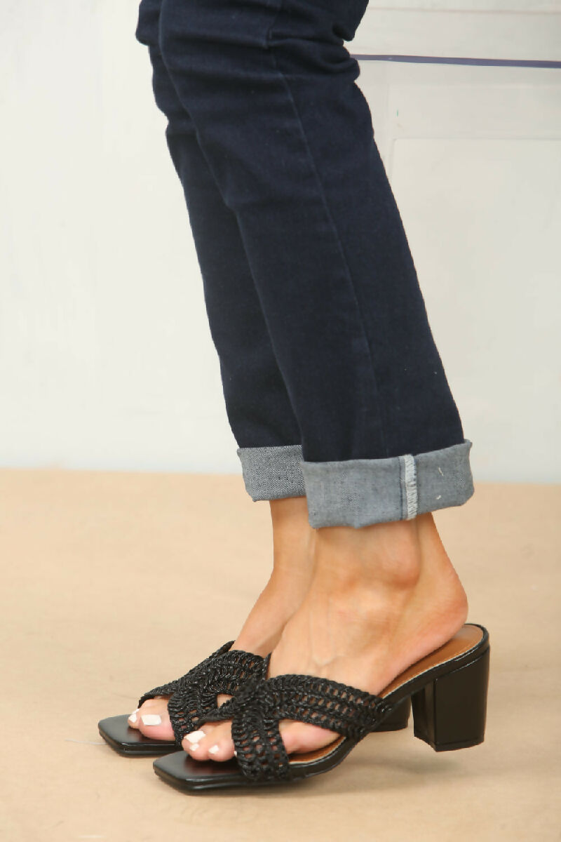 KNITTED BLOCK HEEL MULES IN BLACK (PACK OF 12 PAIRS UK3-UK8)