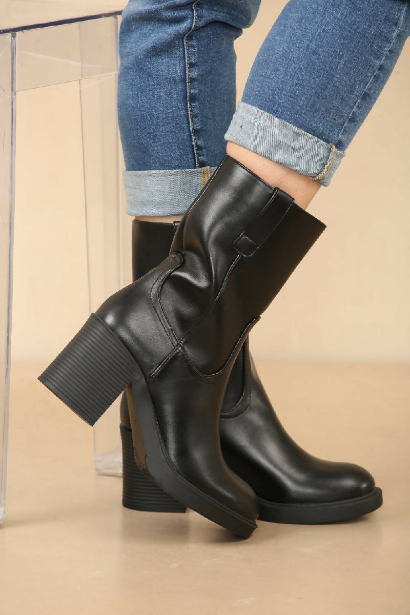 BLACK MID CALF ANKLE BOOT (PACK OF 12 PAIRS UK3-UK8)