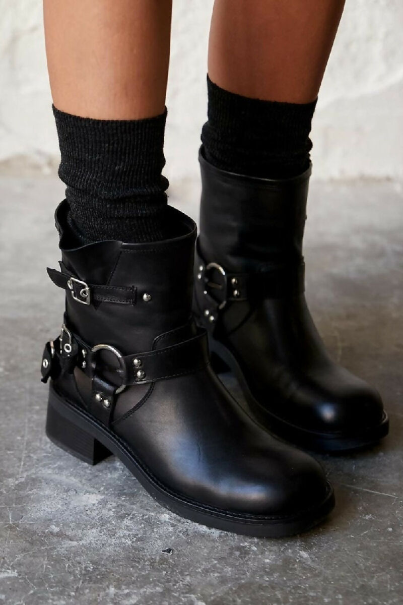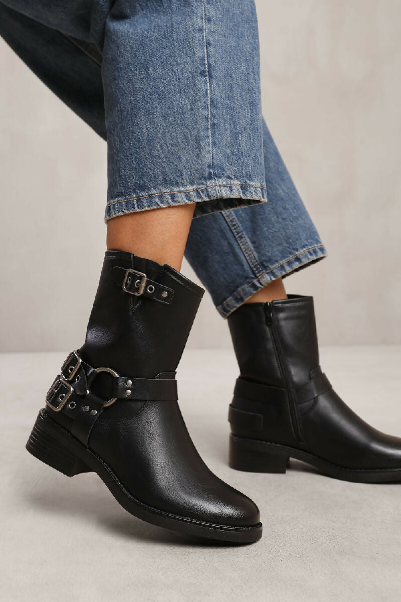 Black PU Buckle Ankle Heeled Biker Boot (PACK OF 12 PAIRS UK3-UK8)