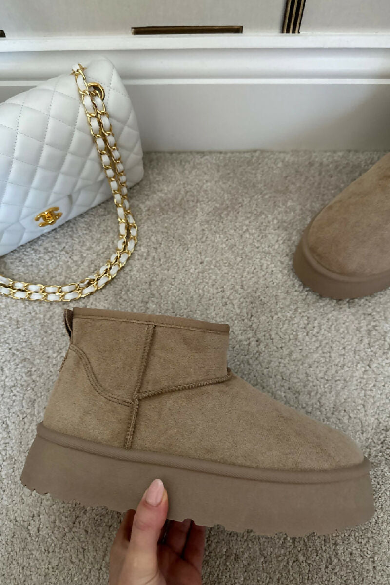 CAMEL ULTRA MINI PLATFORM FAUX FUR LINED ANKLE BOOTS (PACK OF 12 PAIRS UK3-UK8)