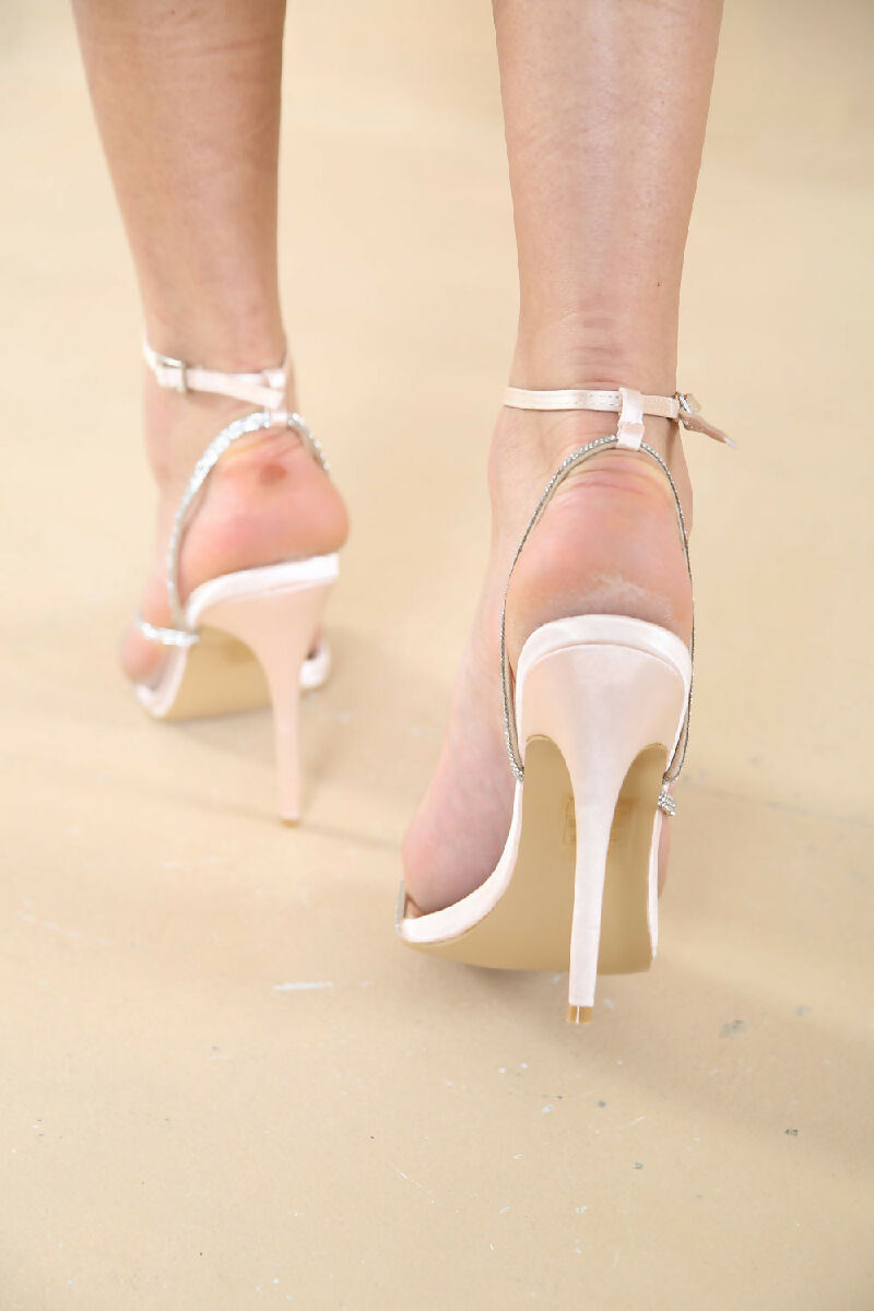 Women's stylish stiletto high heel with diamante detailed strap and buckle fastening ankle strap.