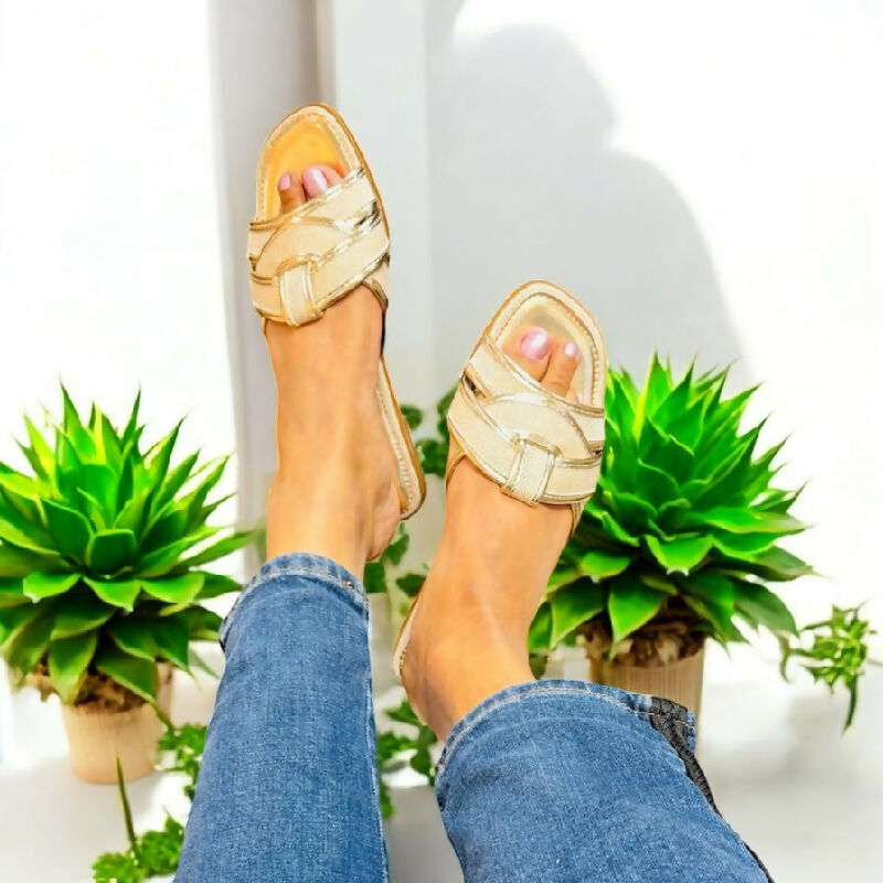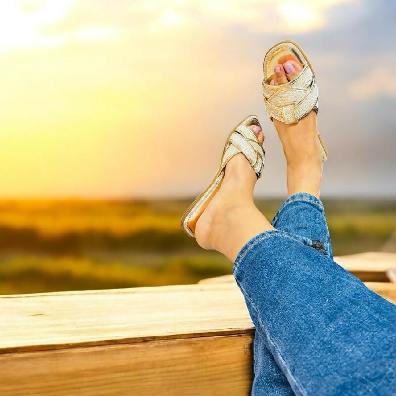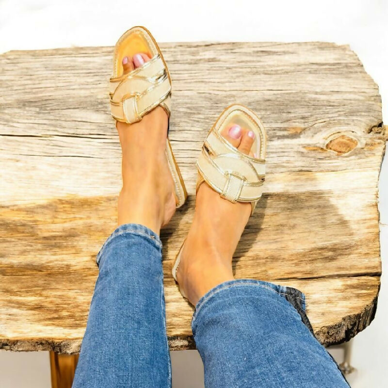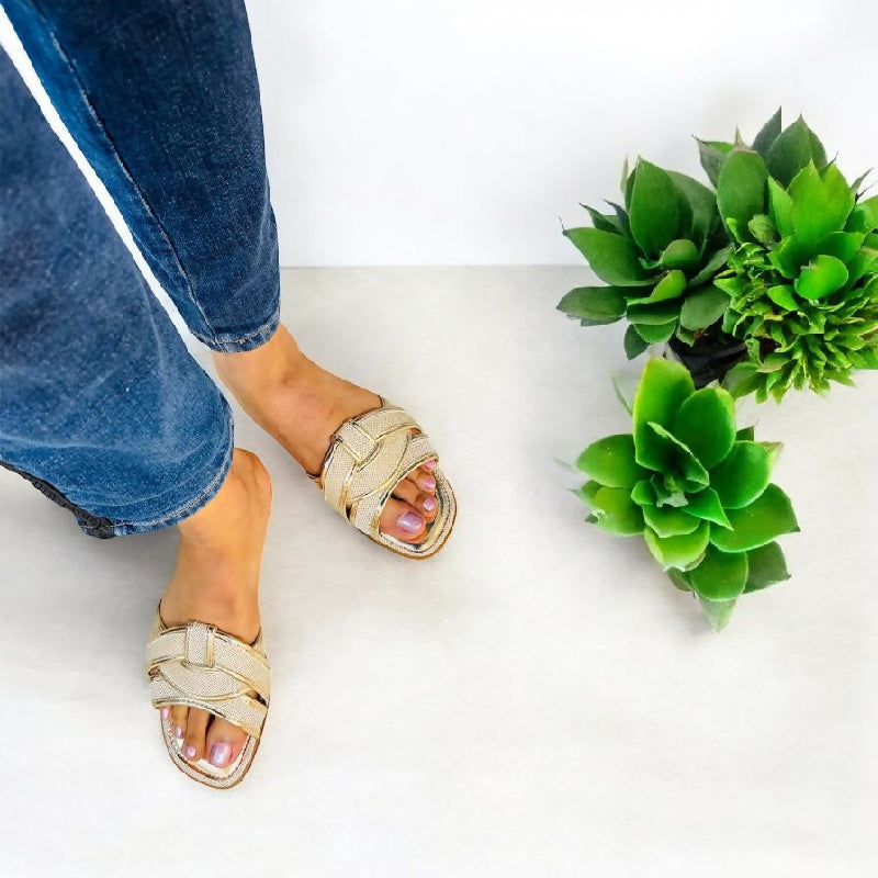 Gold Canvas Woven Flat Slider Sandal (PACK OF 12 PAIRS UK3-UK8)