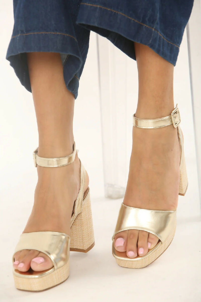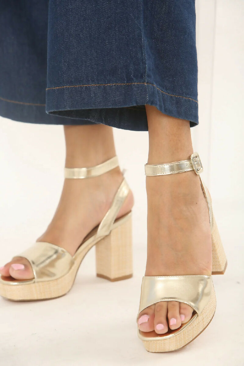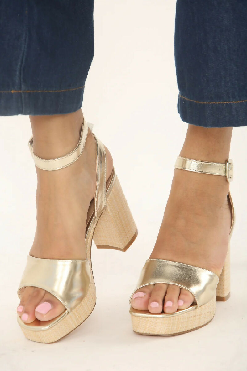GOLD LOW PLATFORM RAFFIA BLOCK HEELS (PACK OF 12 PAIRS UK3-UK8)