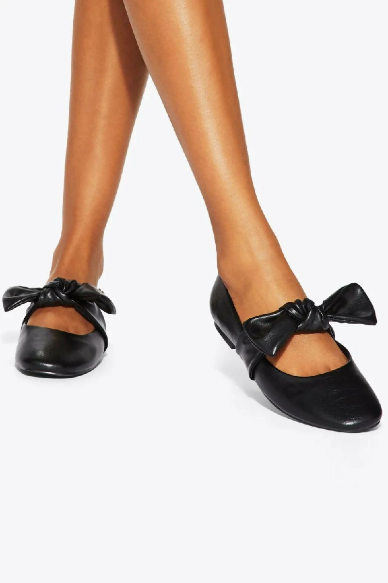 BLACK PU BOW DETAIL MARY JANE BALLET (PACK OF 12 PAIRS UK3-UK8)