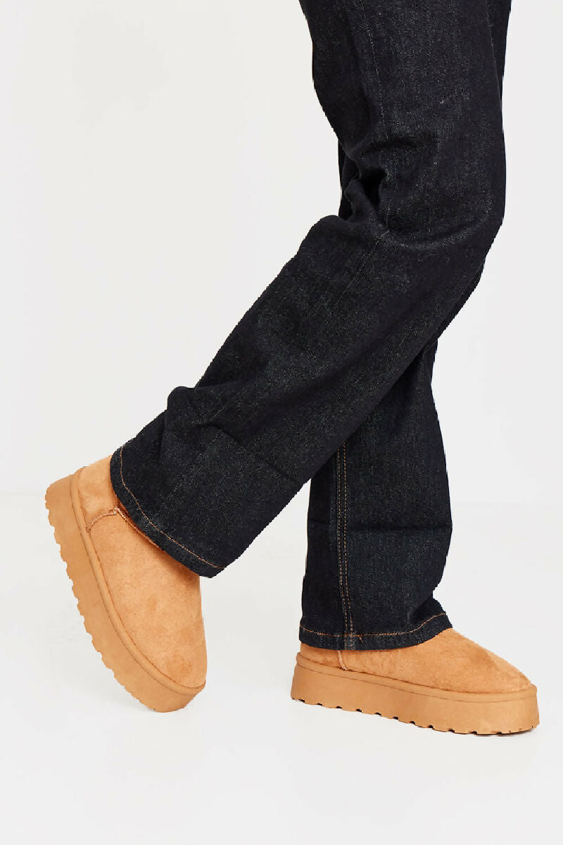 CHESTNUT THICK SOLED SLIP ON FUR LINED ANKLE BOOTS (PACK OF 12 PAIRS UK3-UK8)