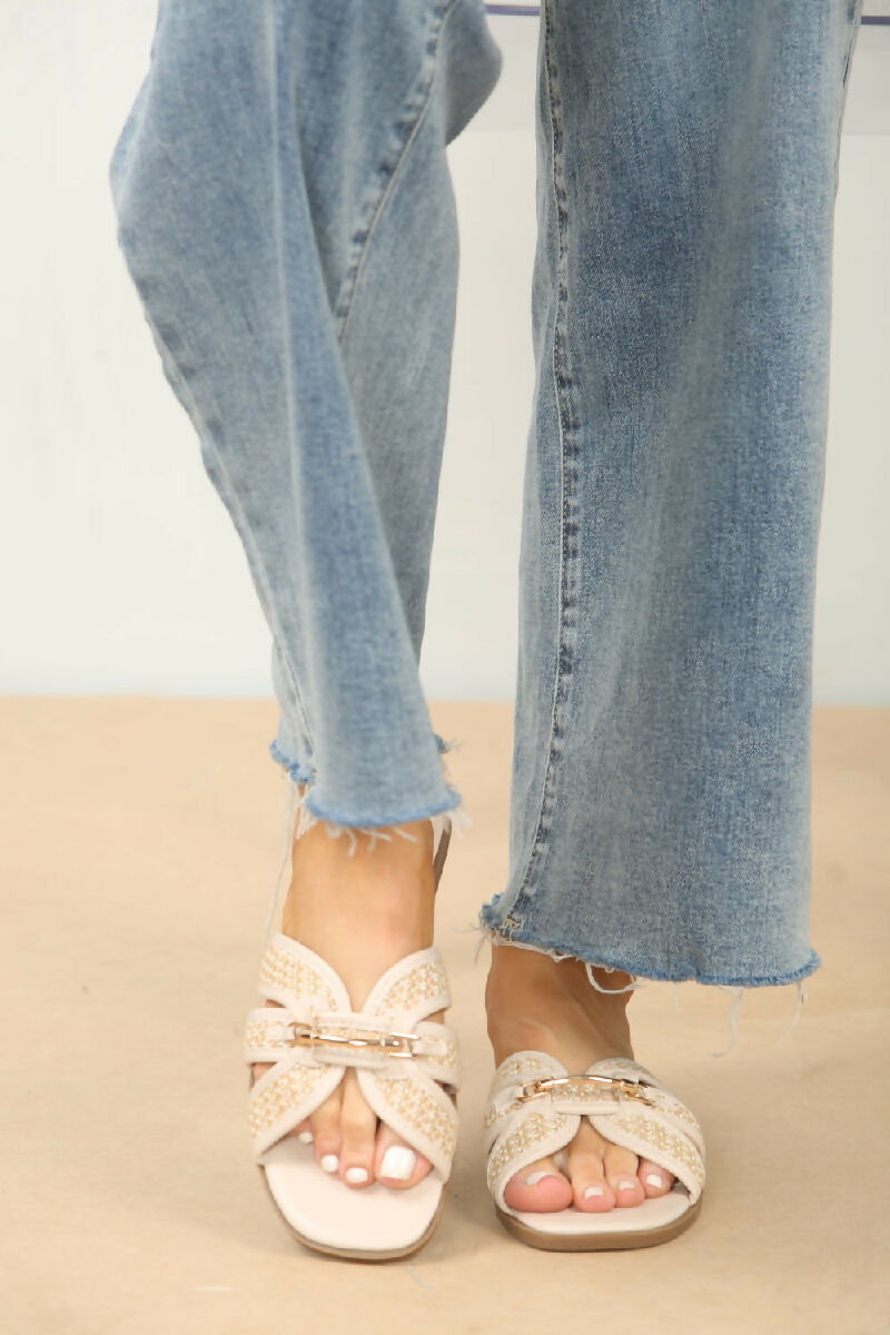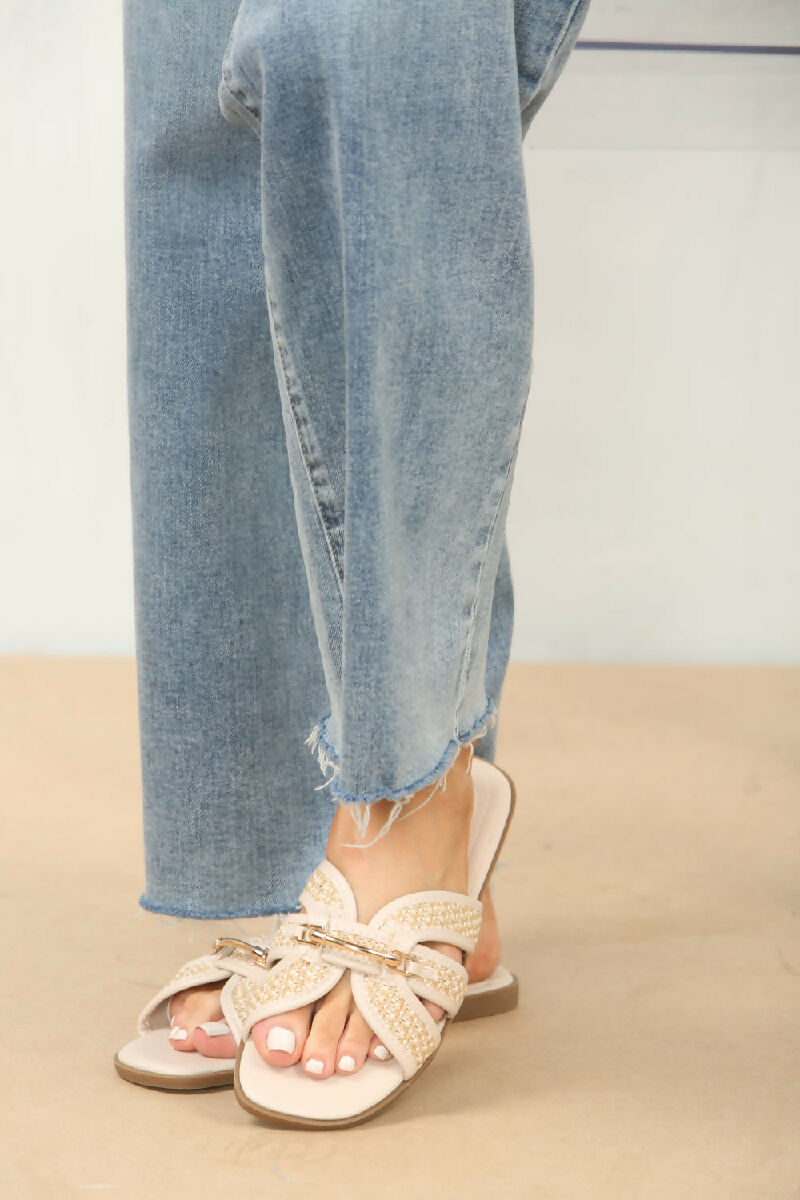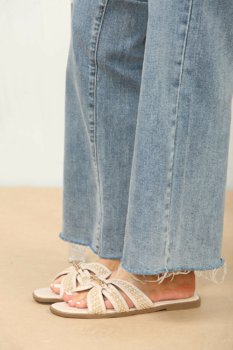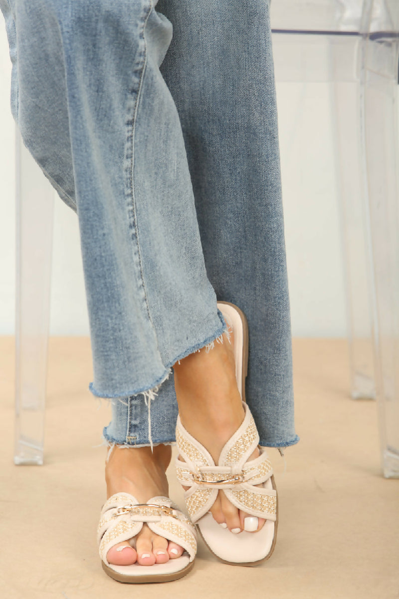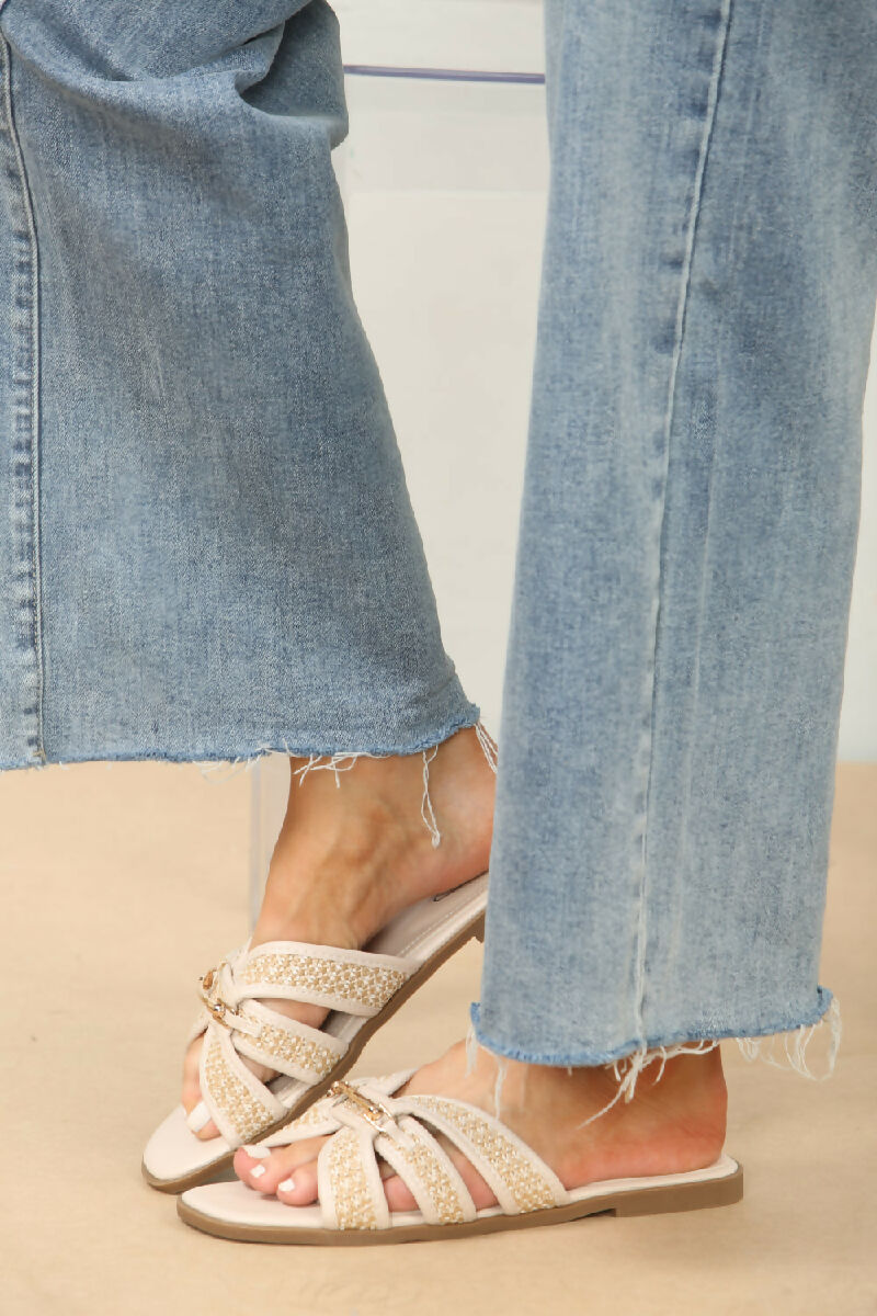 CREAM DESIGNER TRIM DETAIL RAFFIA STRAP SANDALS (PACK OF 12 PAIRS UK3-UK8)