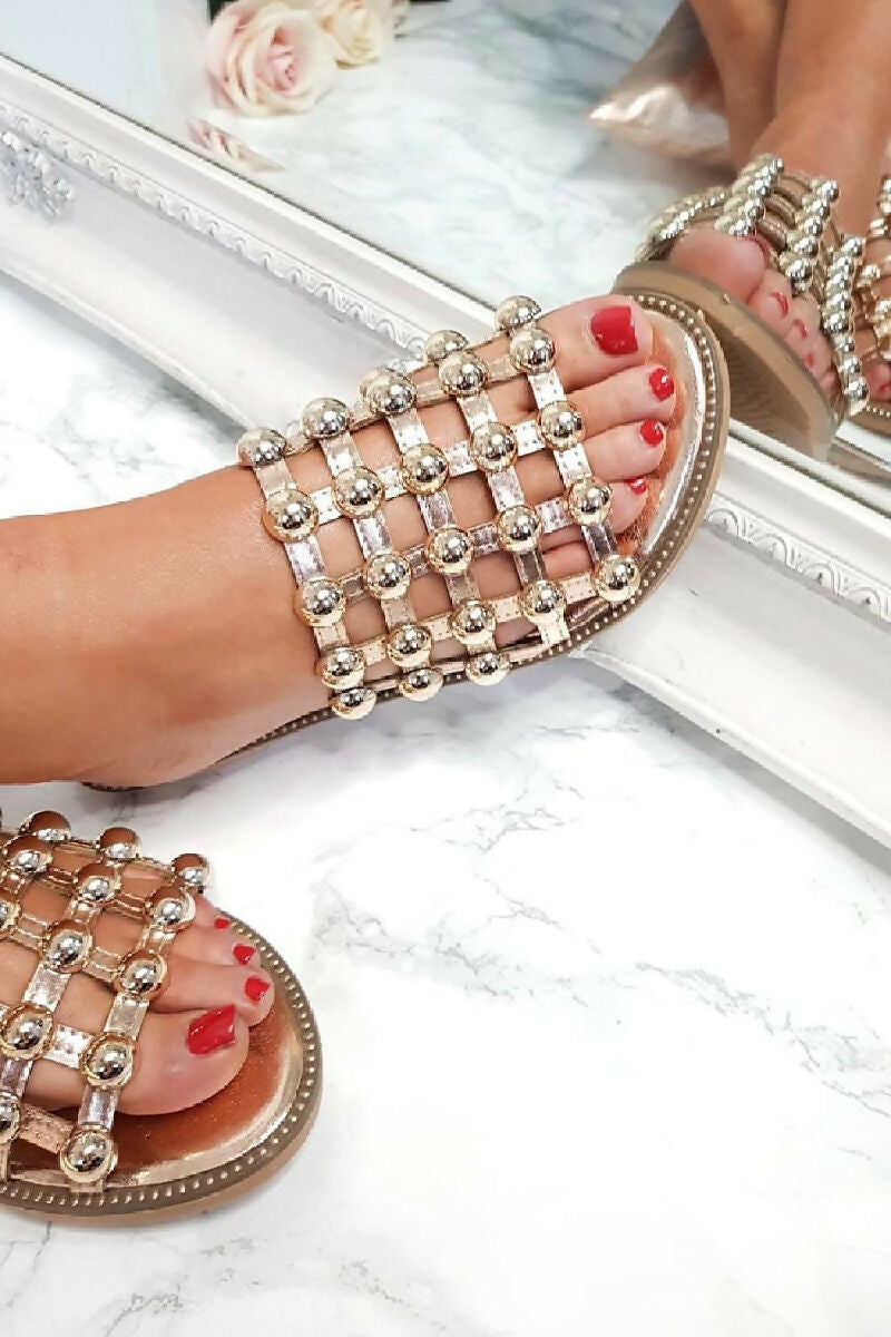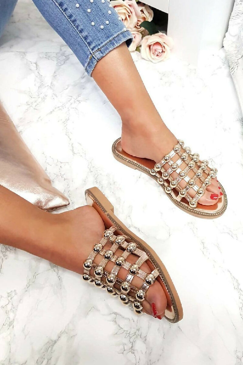 Rose gold Studded Caged Slider Sandals (PACK OF 12 PAIRS UK3-UK8)