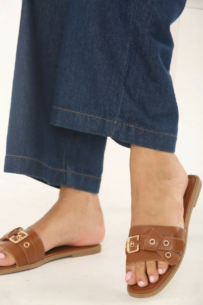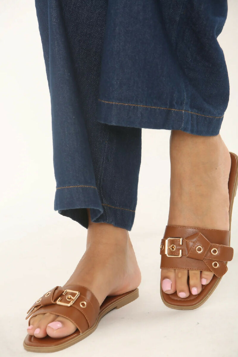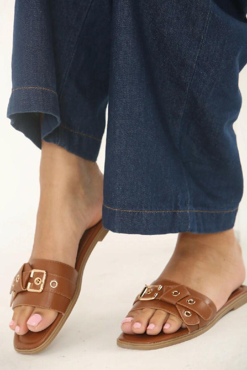 Tan Buckle Designer Strap Sandal (PACK OF 12 PAIRS UK3-UK8)