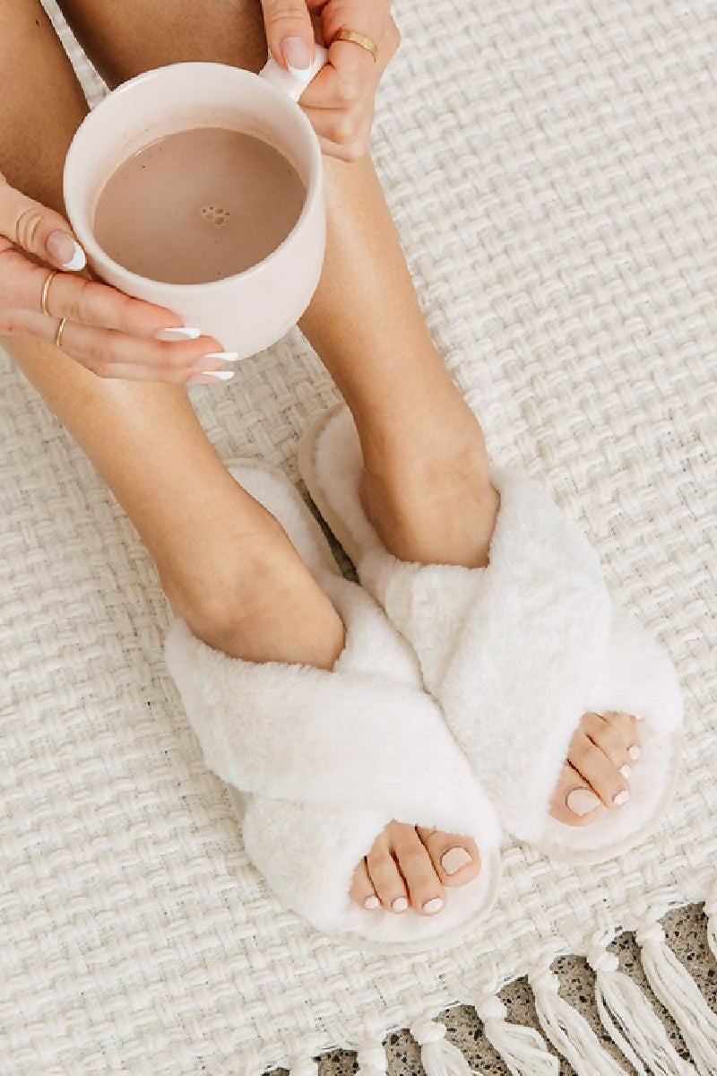 White Cross Strap Faux Fur Slippers (PACK OF 12 PAIRS UK3-UK8)
