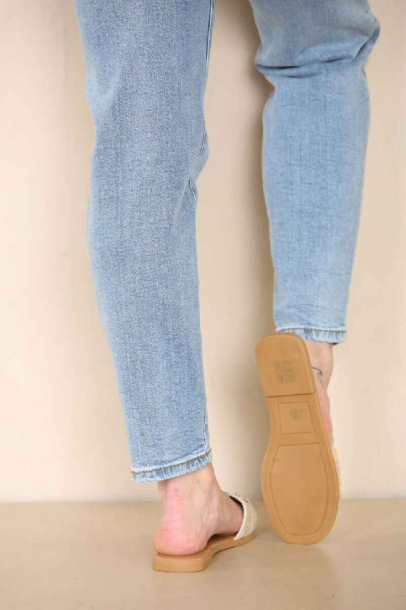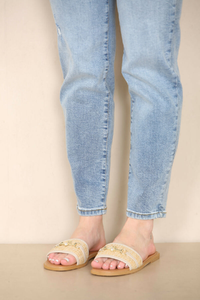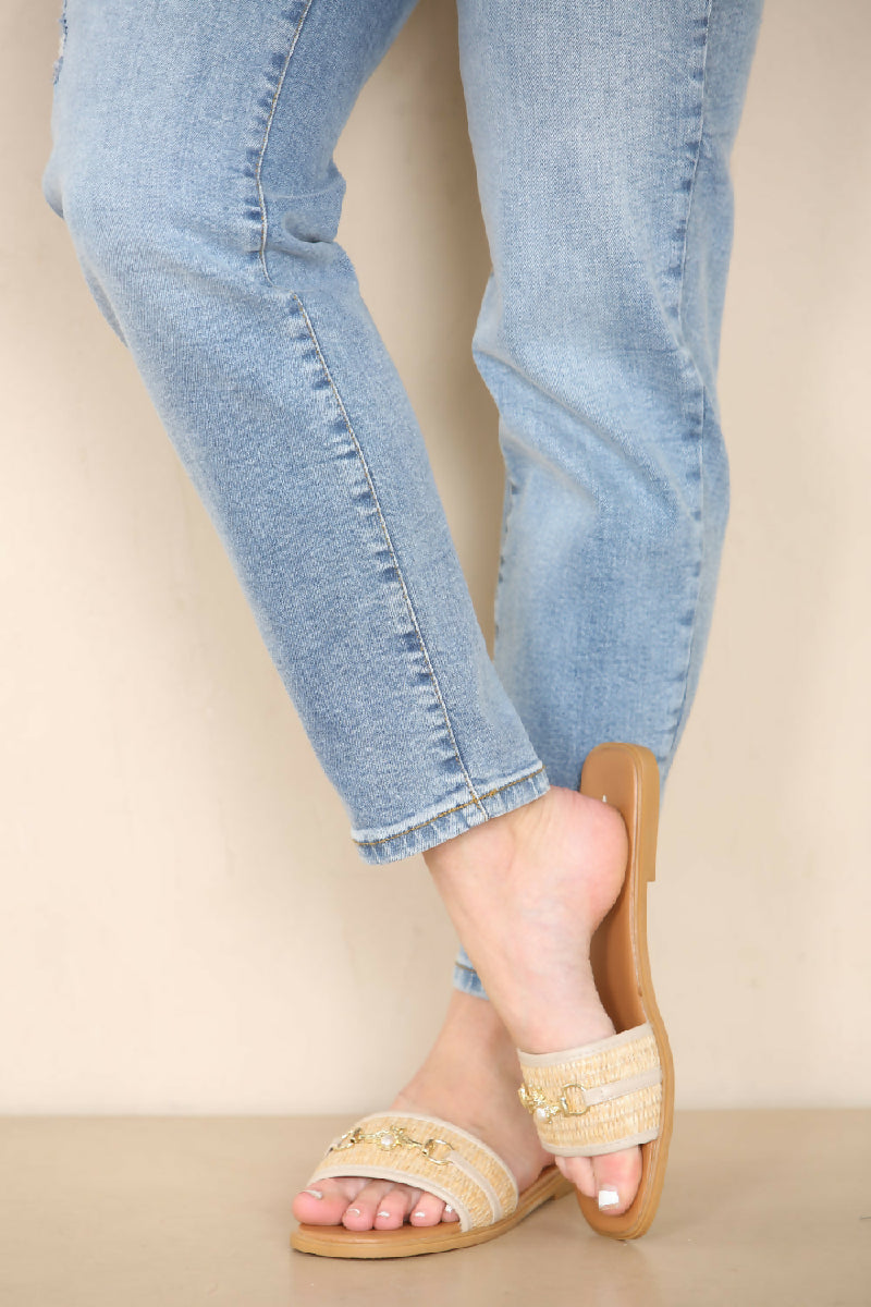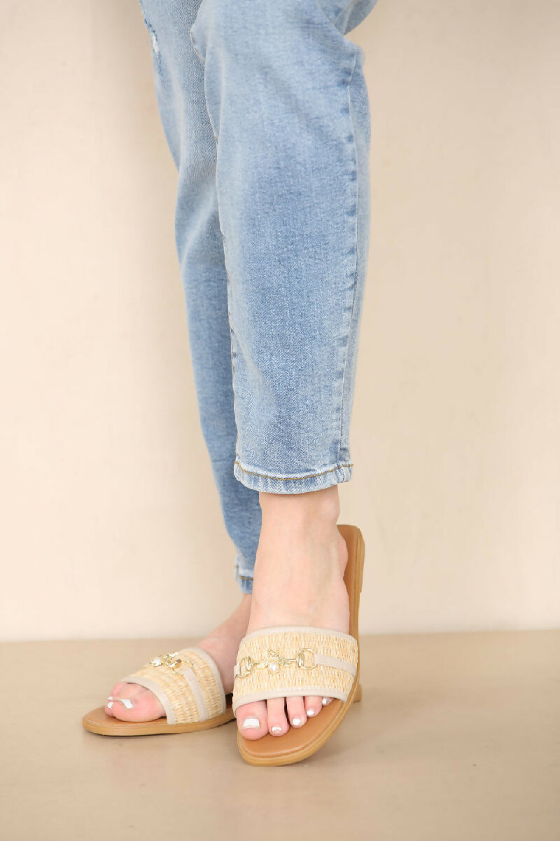 BEIGE PU GOLD TRIM DETAIL SLIDER SANDALS (PACK OF 12 PAIRS UK3-UK8)