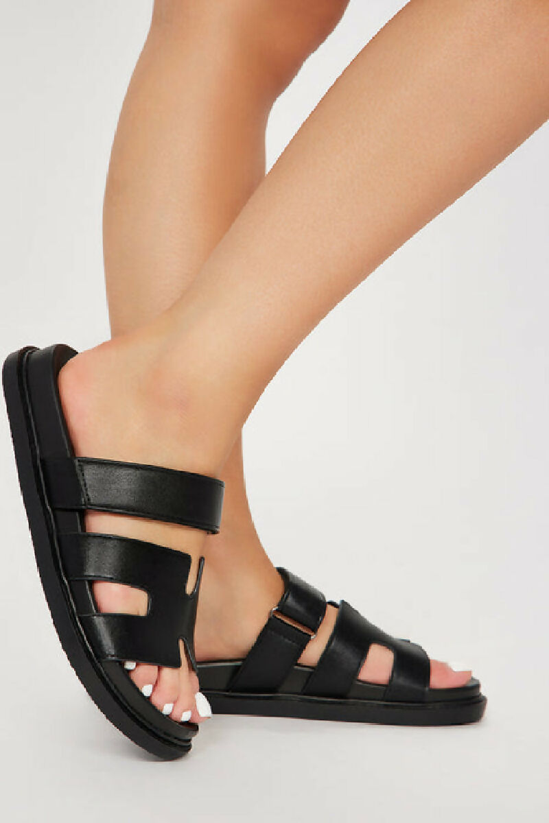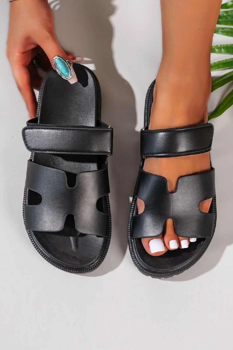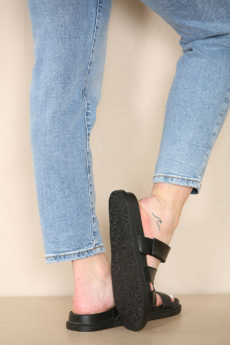 Black PU Designer Strap Sandals (PACK OF 12 PAIRS UK3-UK8)