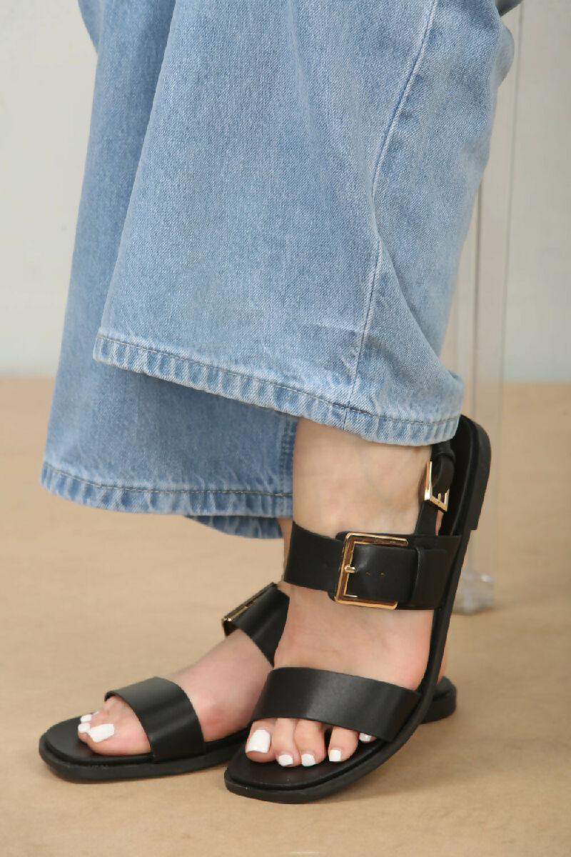 Black PU Strappy Sandals (PACK OF 12 PAIRS UK3-UK8)