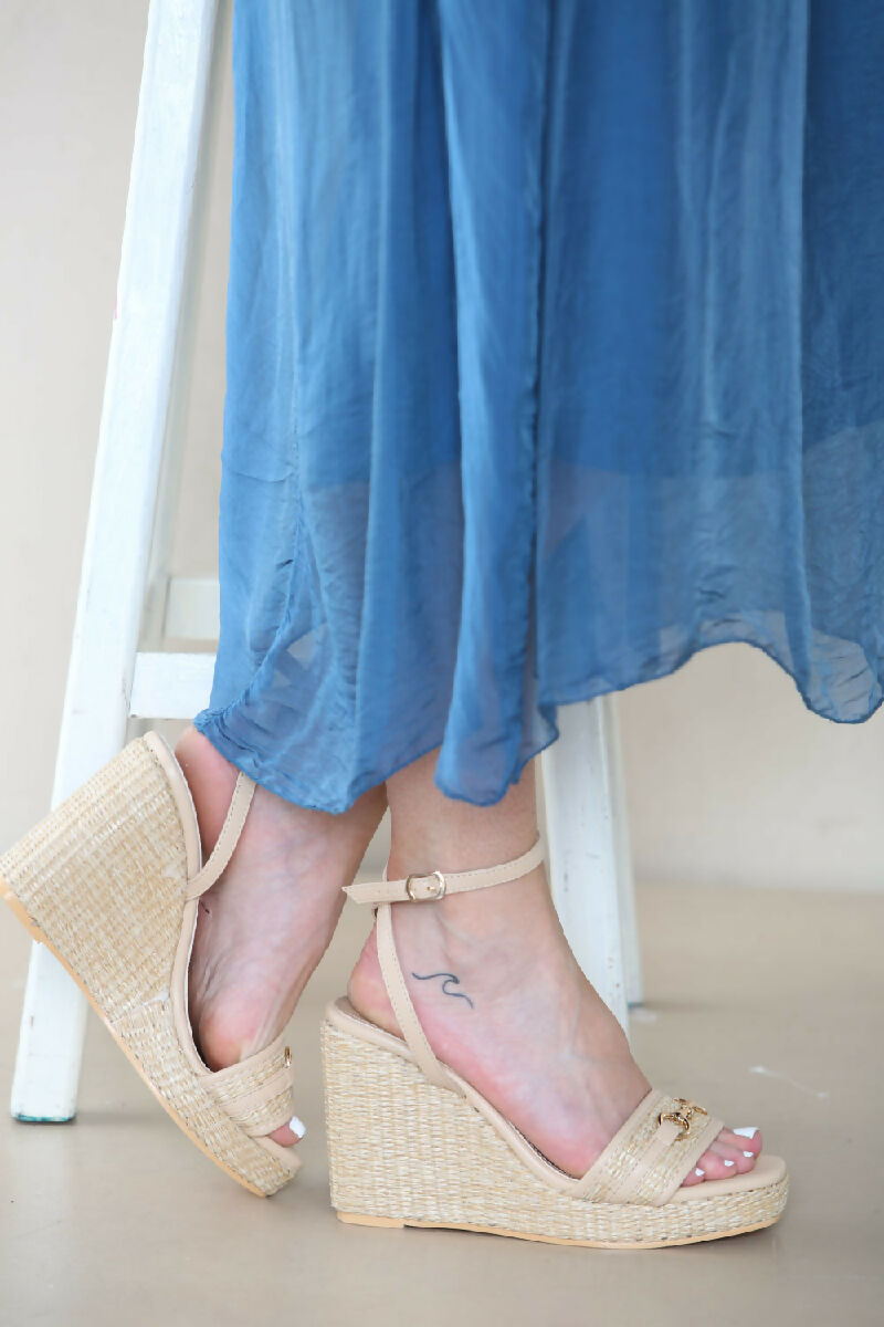 NUDE BASKET WEAVE WEDGE SANDALS WITH TRIM BUCKLE DETAIL (PACK OF 12 PAIRS UK3-UK8)