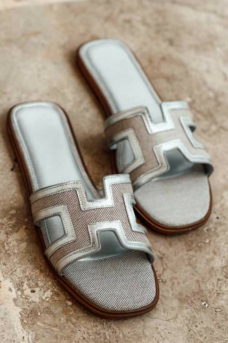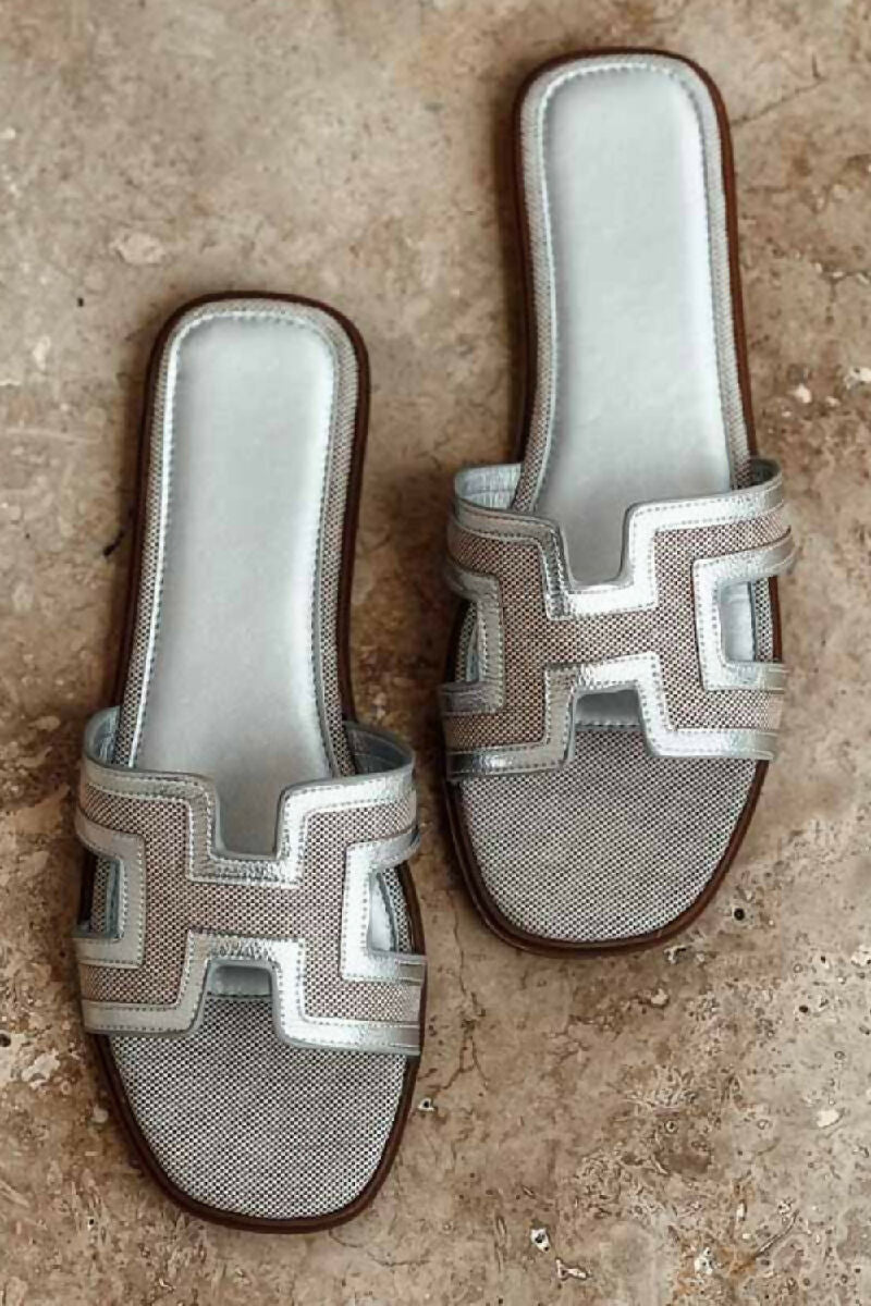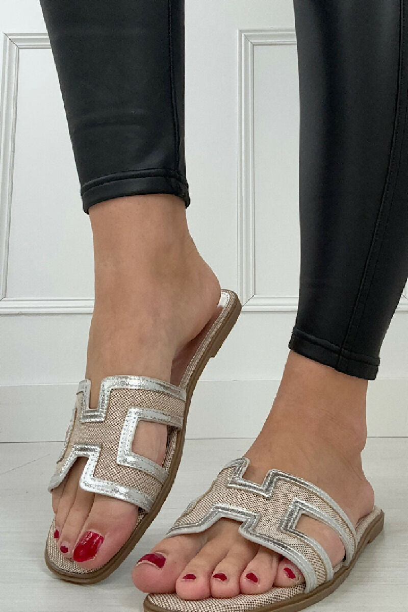 SILVER FAUX LEATHER DESIGNER STRAP SANDALS (PACK OF 12 PAIRS UK3-UK8)