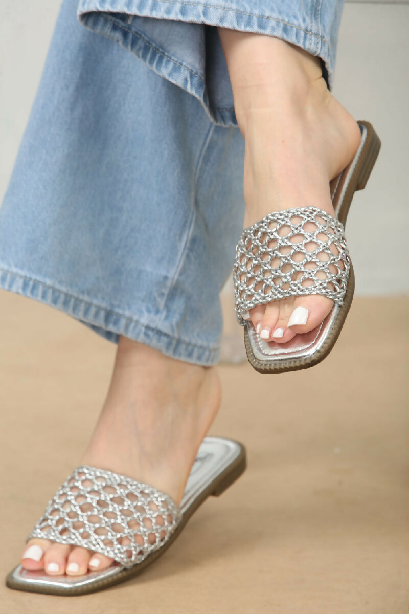 Silver Mesh Detailed Strap Flat Sandals (PACK OF 12 PAIRS UK3-UK8)