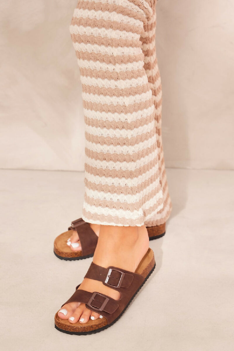 BROWN SOFT FOOTBED SUMMER FLAT SLIDERS SANDALS (PACK OF 12 PAIRS UK3-UK8)