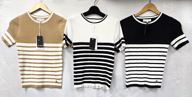 Elevate your collection with the Ribbed Knit Striped Top, a retro-inspired, versatile piece that blends comfort with style.