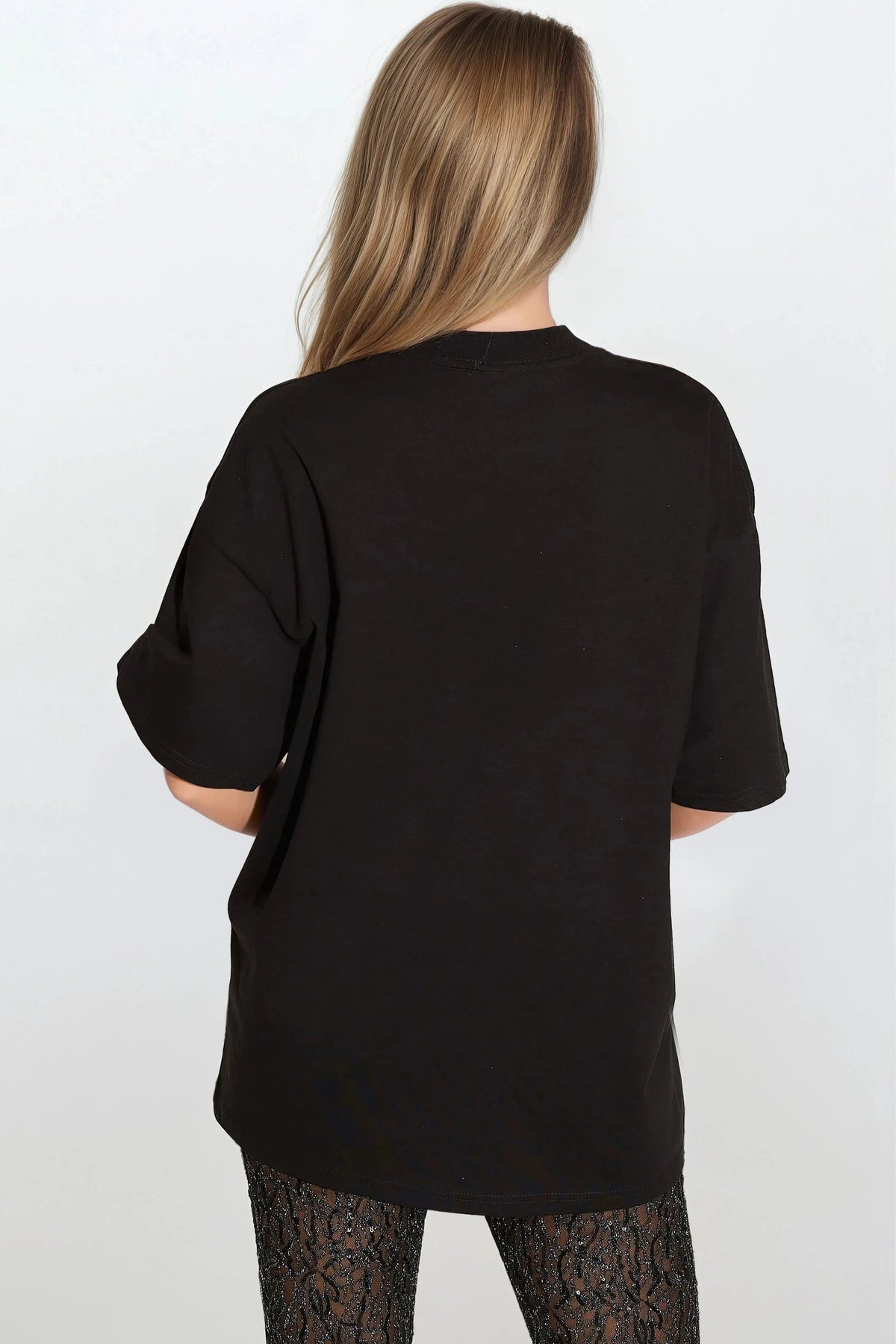 Black Oversized Leopard Print T-Shirt - jqwholesale.com