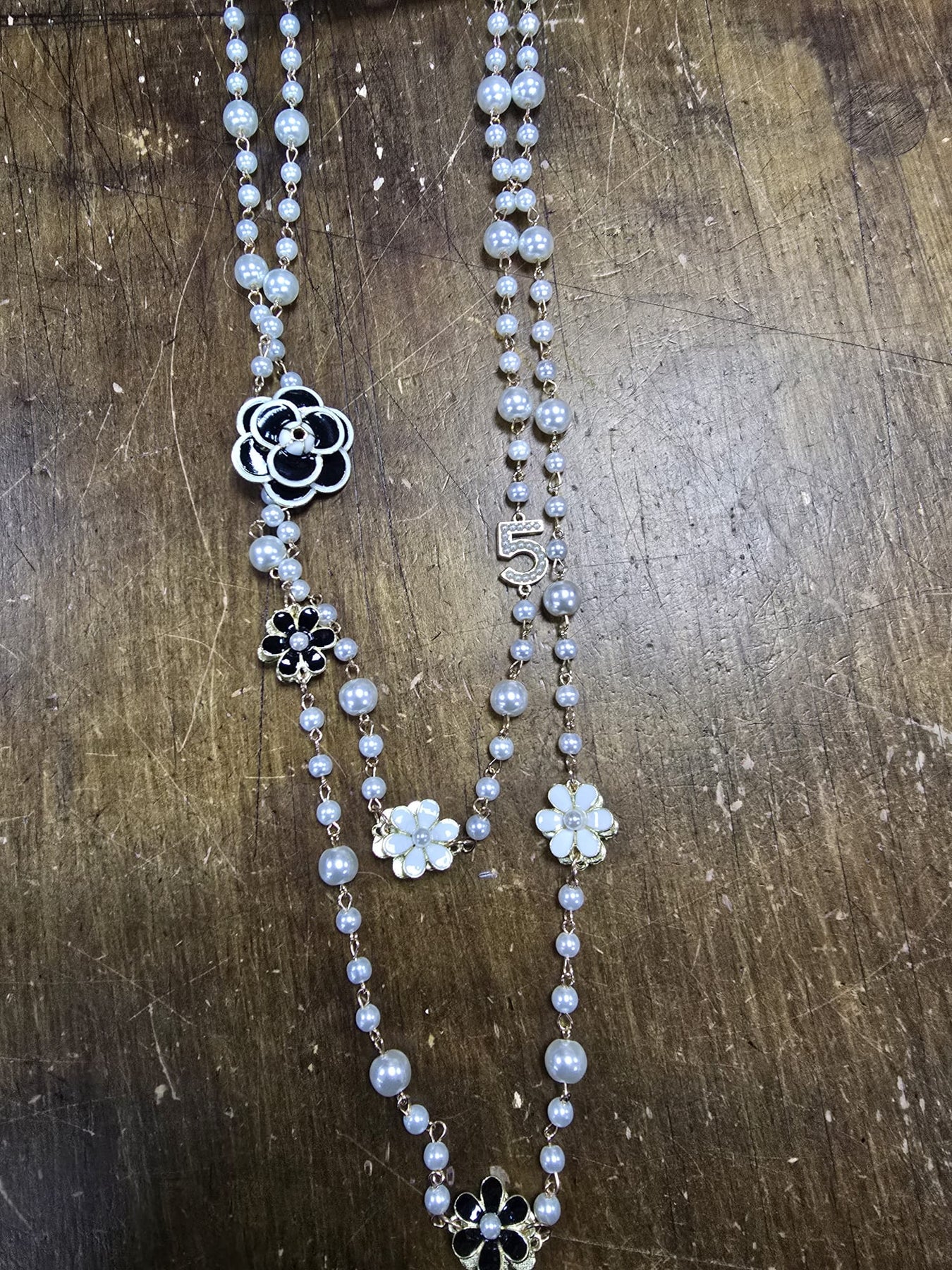 Metal Inspired pearl necklace. Metal clasp fastening.